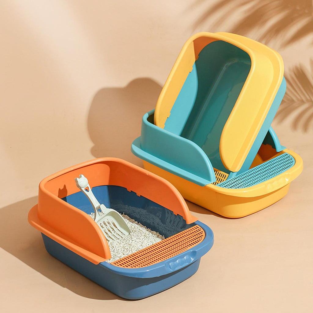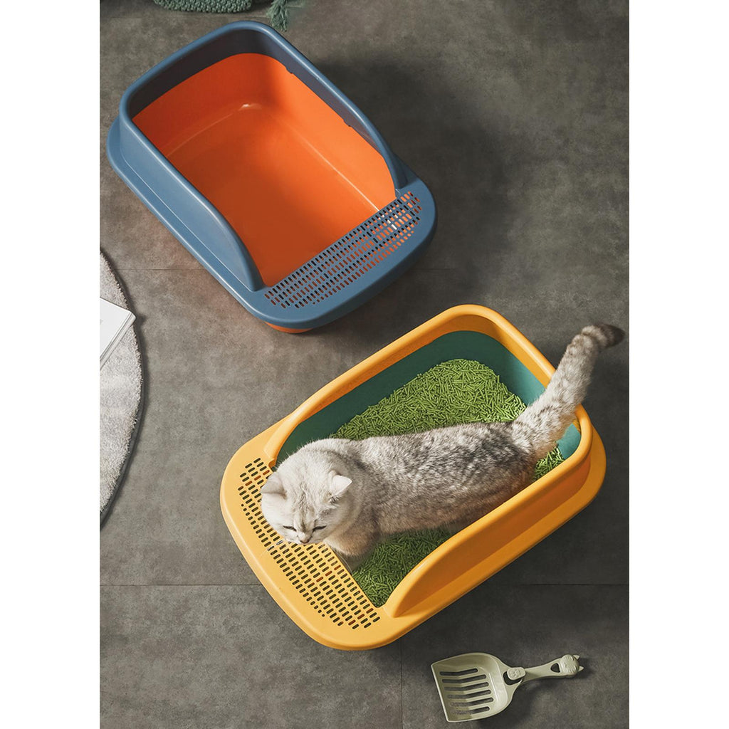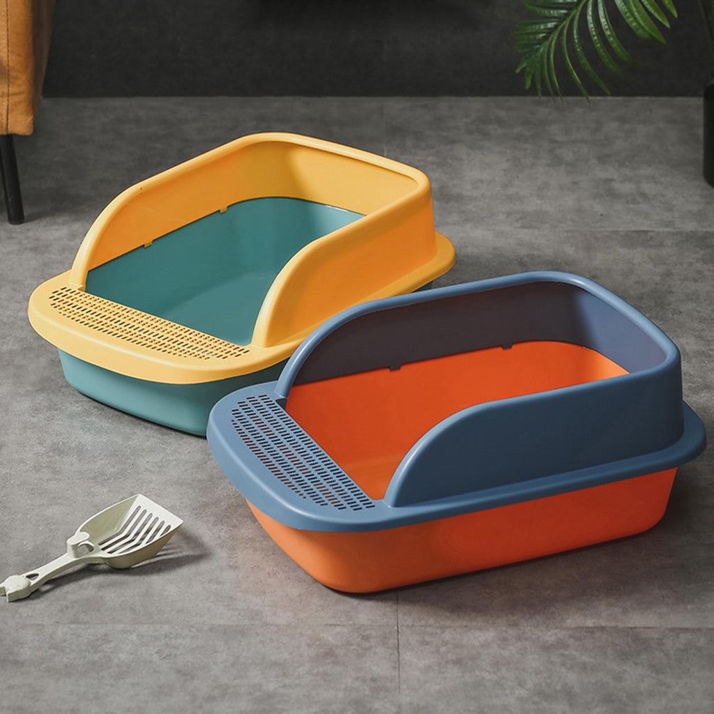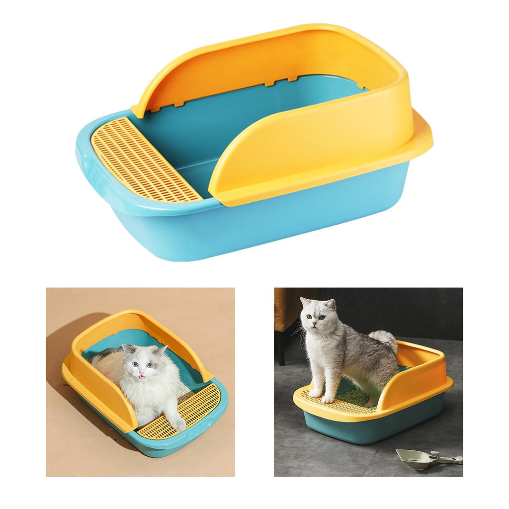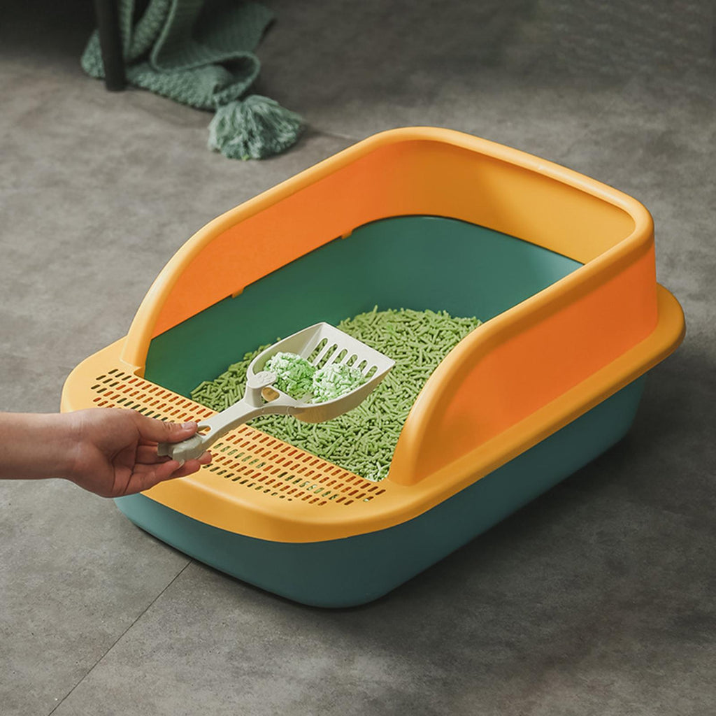 Maxbell Pet Litter Tray Sand Box Container Open Top Bedpan Cat Litter Box with Scoop Yellow Green