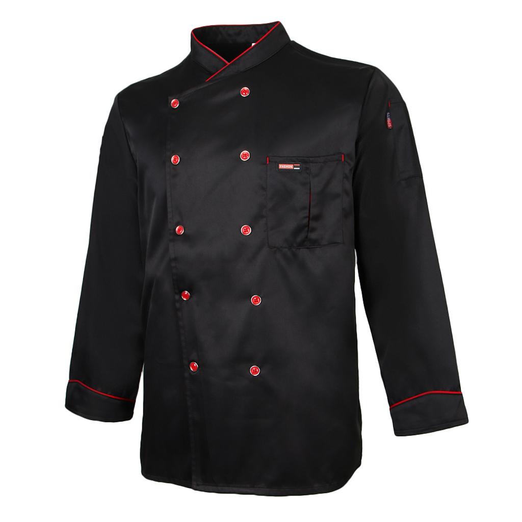 Maxbell Piping Chef Jacket Coat Uniform Long Sleeve Hotel Kitchen Apparel 2XL Black