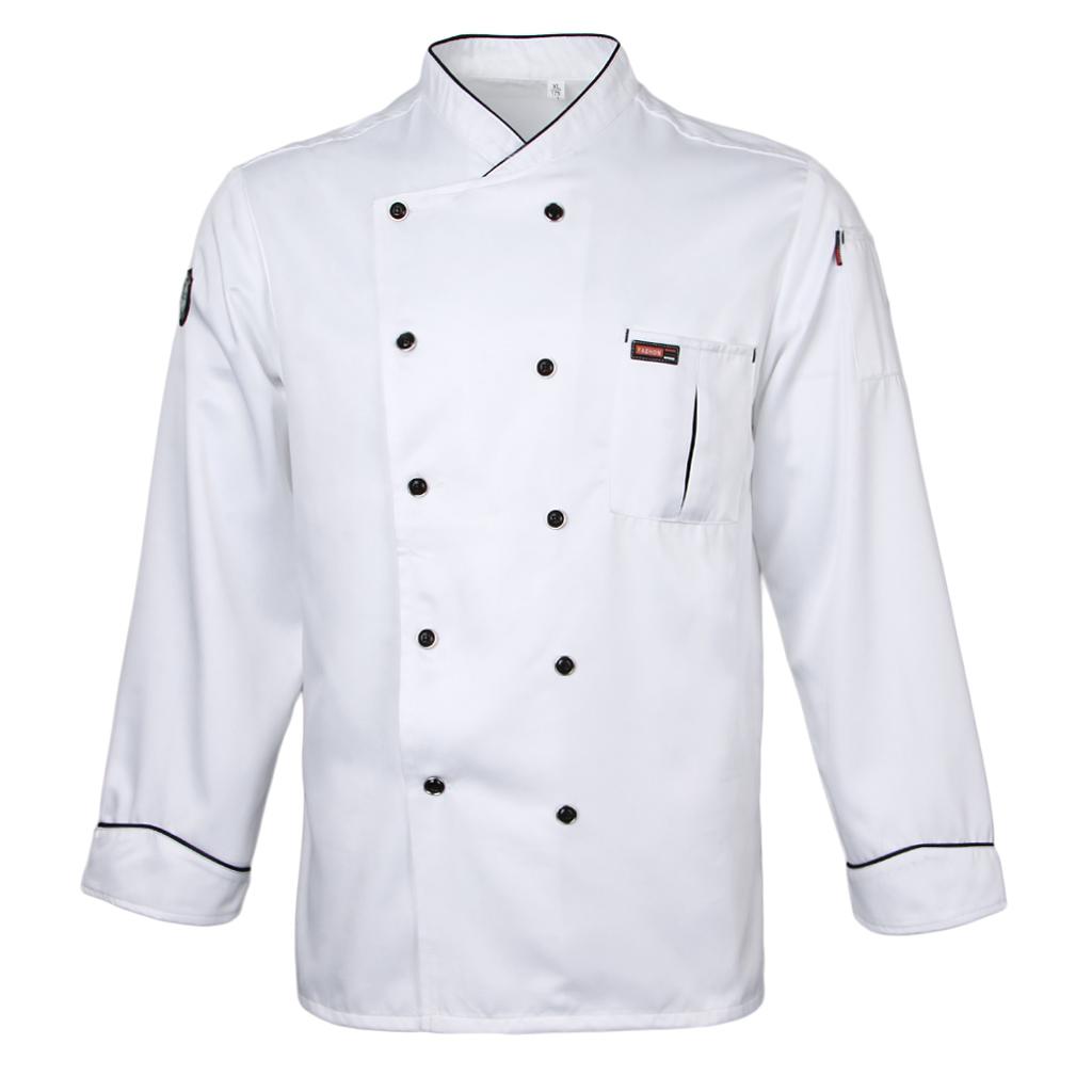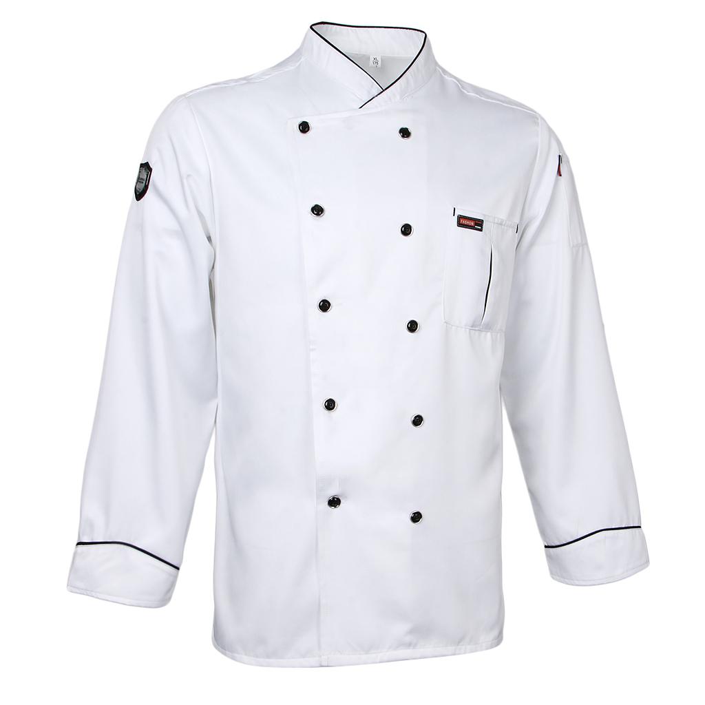Maxbell Piping Chef Jacket Coat Uniform Long Sleeve Hotel Kitchen Apparel 3XL White