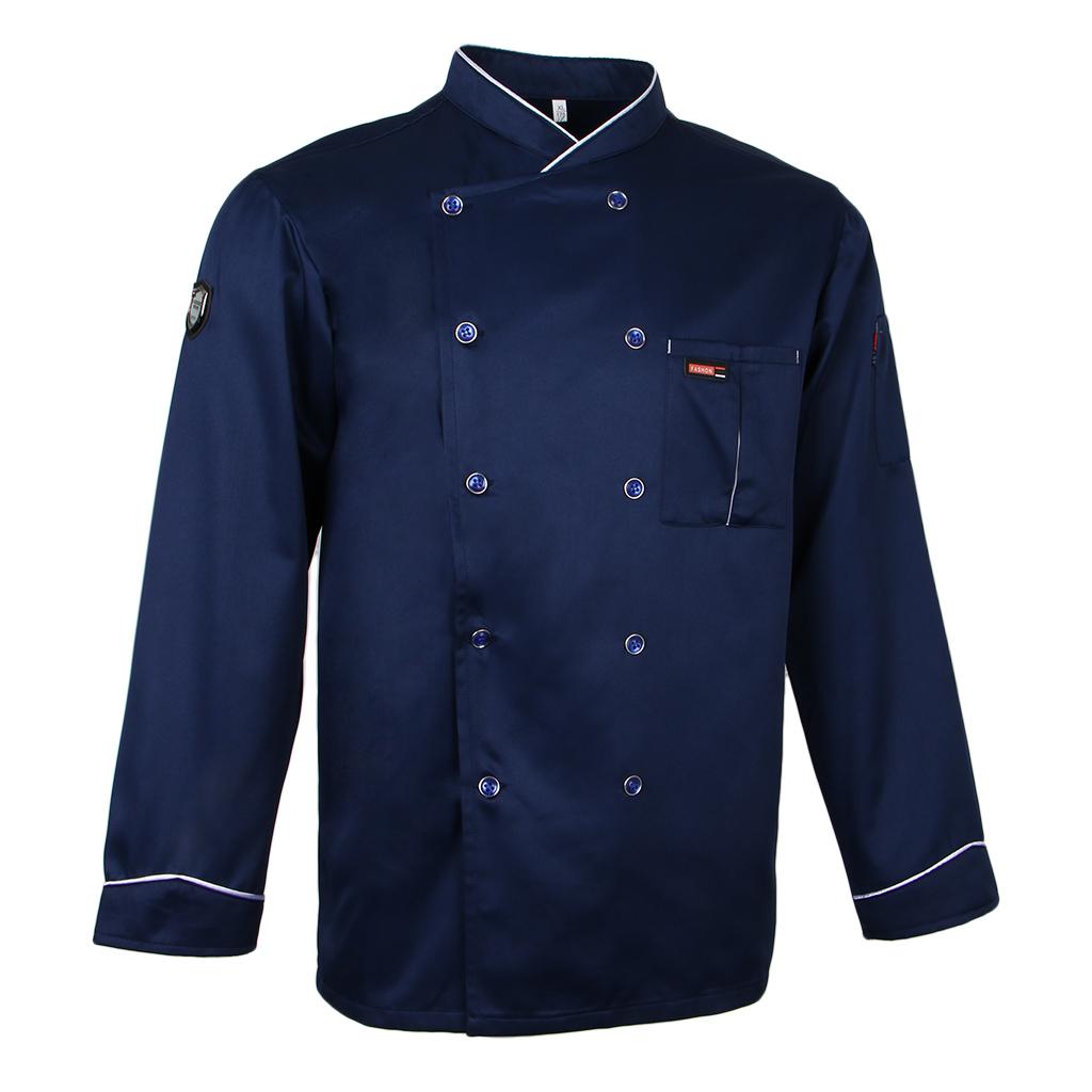 Maxbell Piping Chef Jacket Coat Uniform Long Sleeve Hotel Kitchen Apparel L Blue