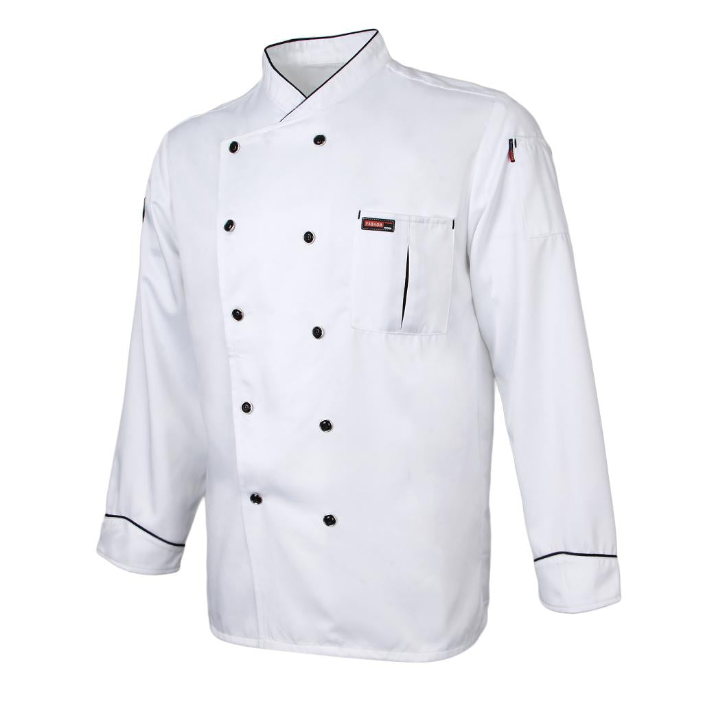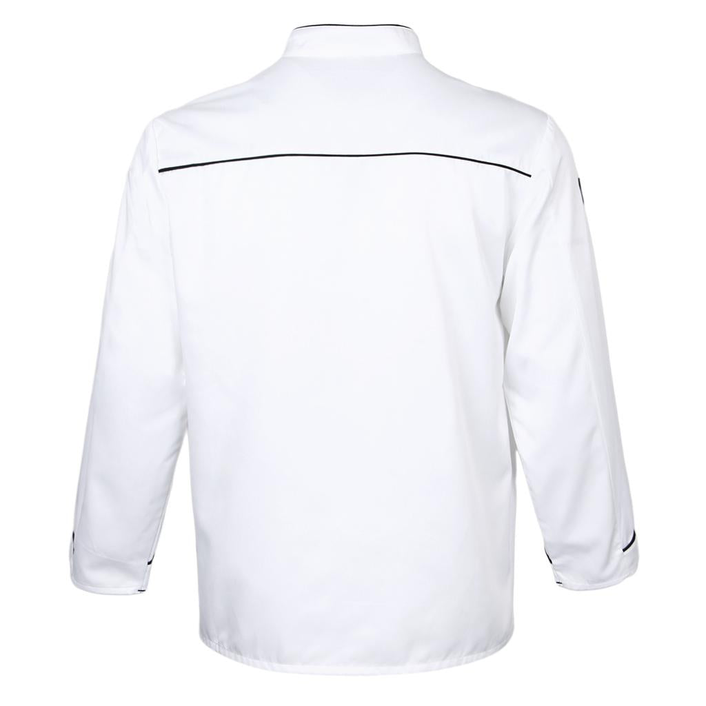 Maxbell Piping Chef Jacket Coat Uniform Long Sleeve Hotel Kitchen Apparel L White
