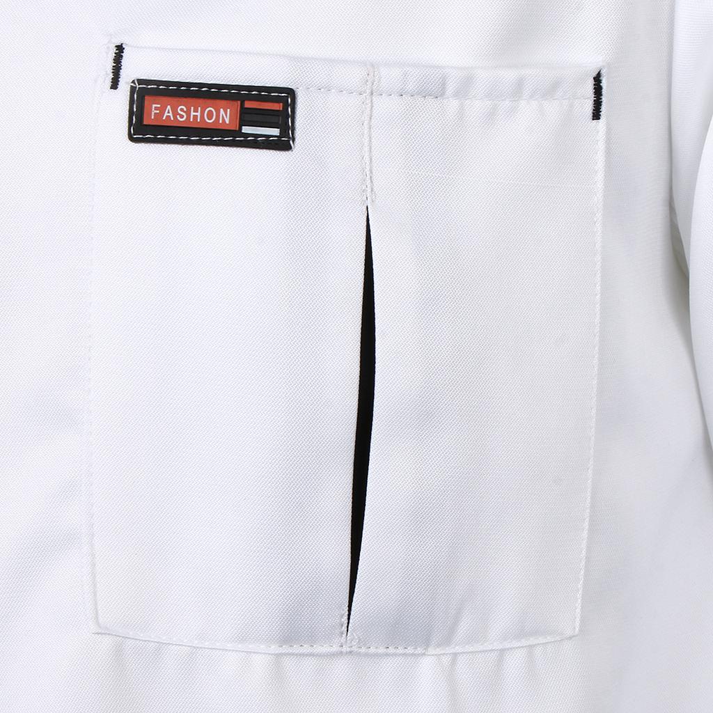 Left arm thermometer pocket, pen pocket and double-breasted design, durable polyester and spandex material