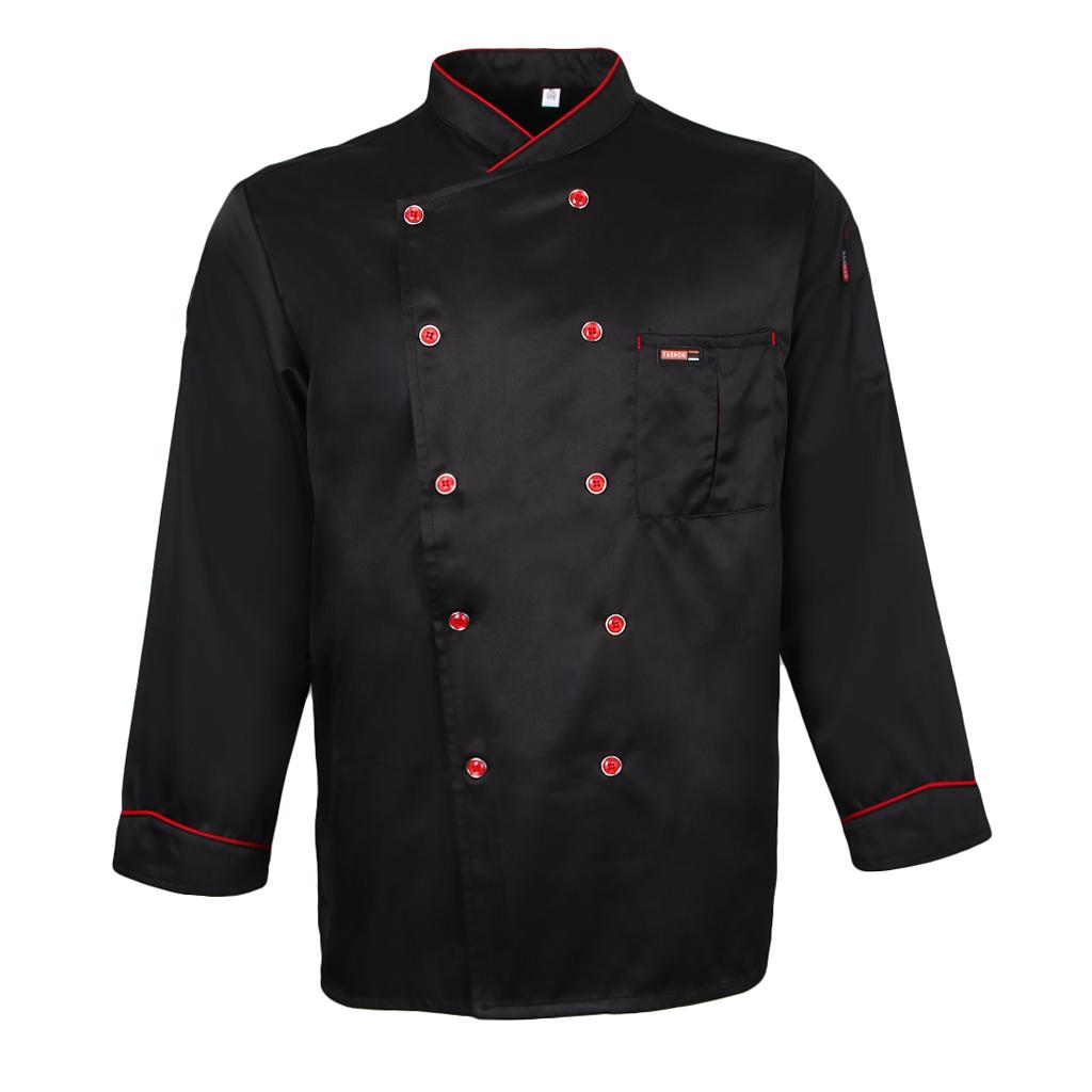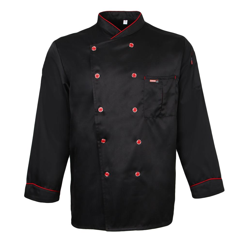 Maxbell Piping Chef Jacket Coat Uniform Long Sleeve Hotel Kitchen Apparel M Black