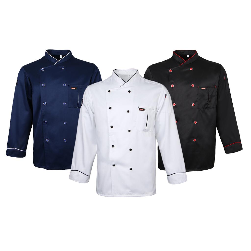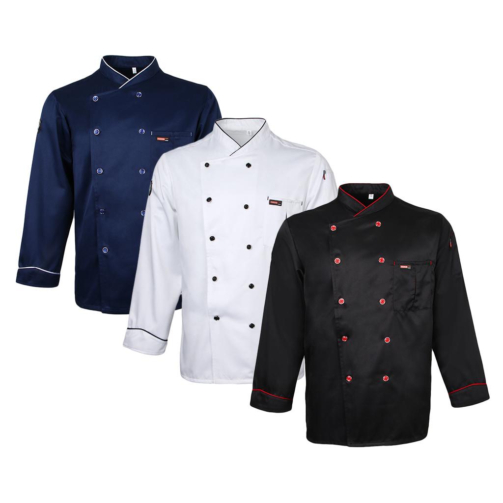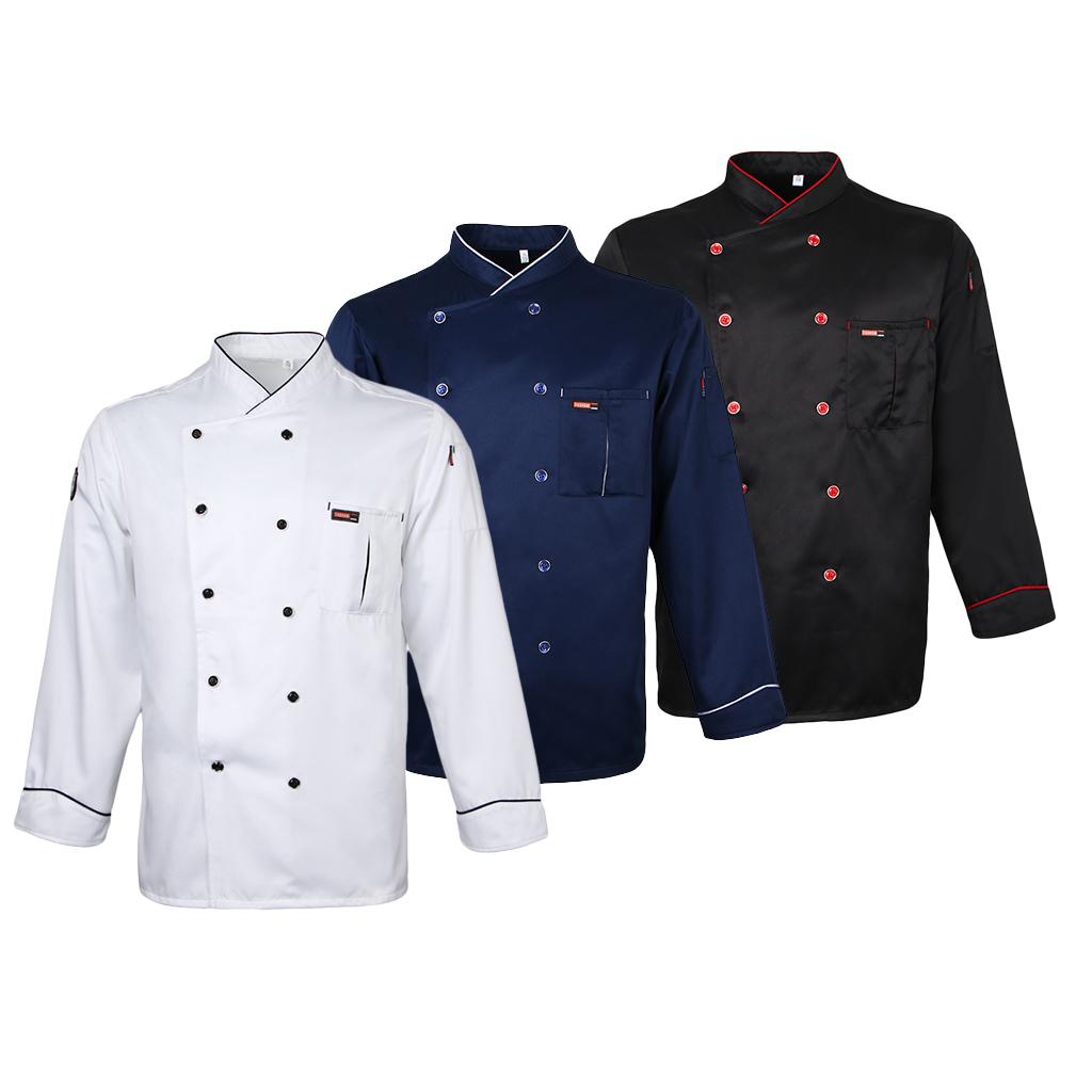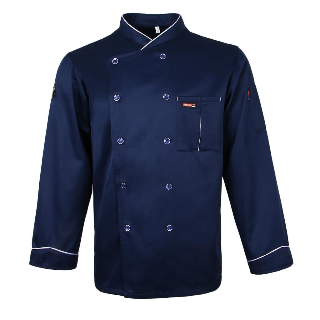 Maxbell Piping Chef Jacket Coat Uniform Long Sleeve Hotel Kitchen Apparel M Blue