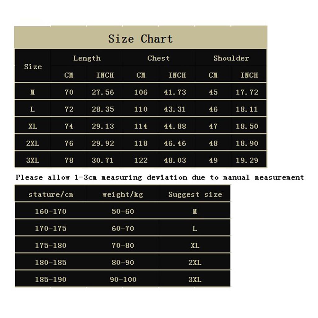 3XL: Length: 78cm (30.7in), Chest: 122cm (46.5in), Shoulder: 49cm (19.2in)