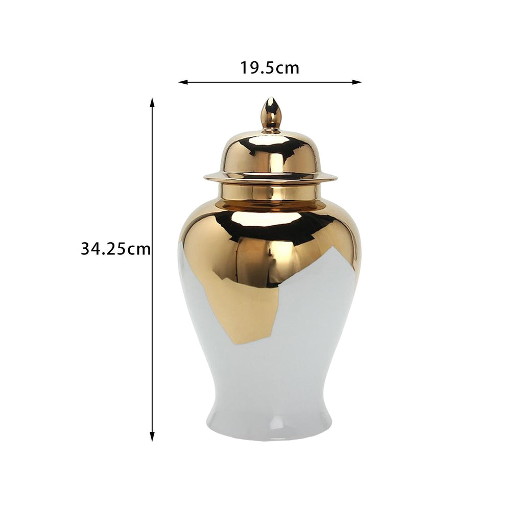 Traditional and Classic: Antique style storage container with gold and white color decoration, with lid, ceramic ginger jar with smooth, elegant .