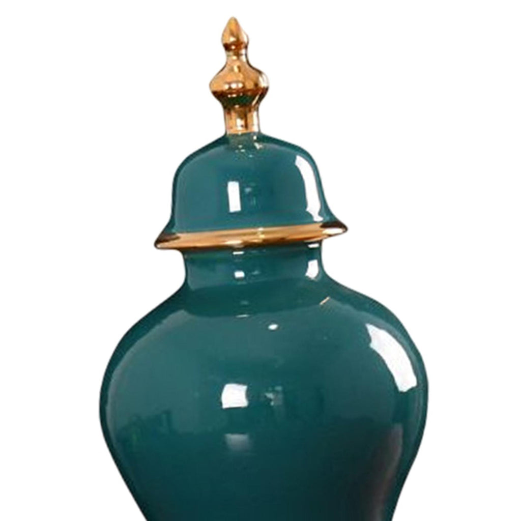 Jar: Retro type green color storage container with lid, ceramic ginger jar with smooth, elegant .