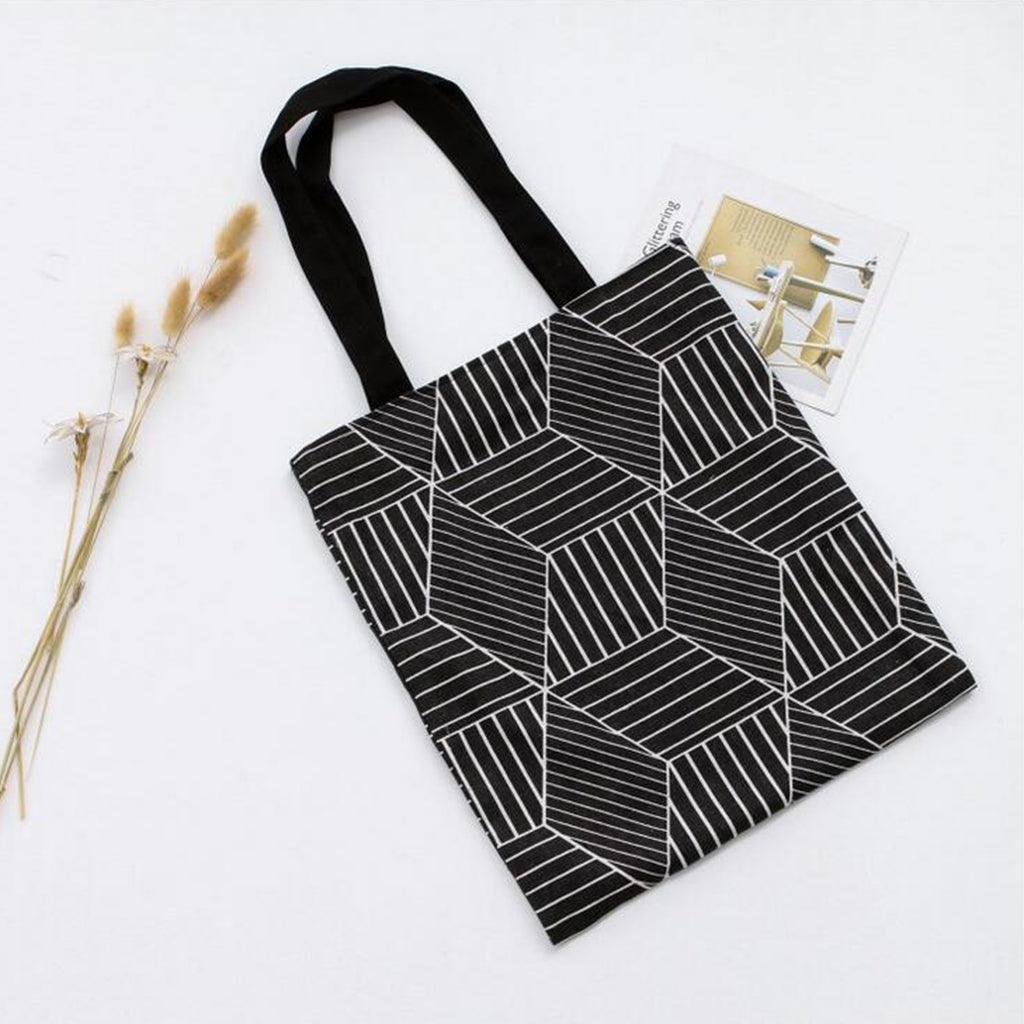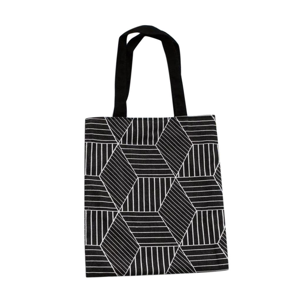 Maxbell Portable Double-sided lunch bag Food Container One-shoulder Black Geometry