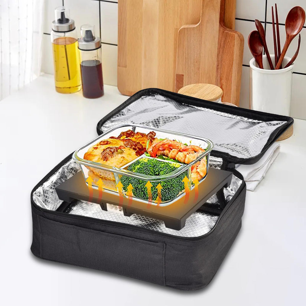 【Design】This portable mini oven heated lunch pouch is matachable with most heat resistant containers, such as aluminum, ceramic, and glass. The portable lunch pouch is also suitable for cooking from scratch, and repacked meals.