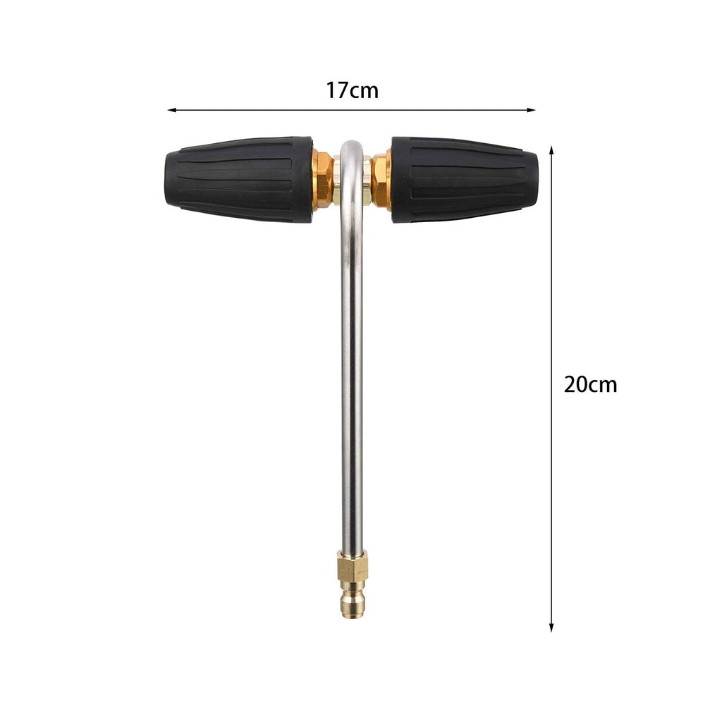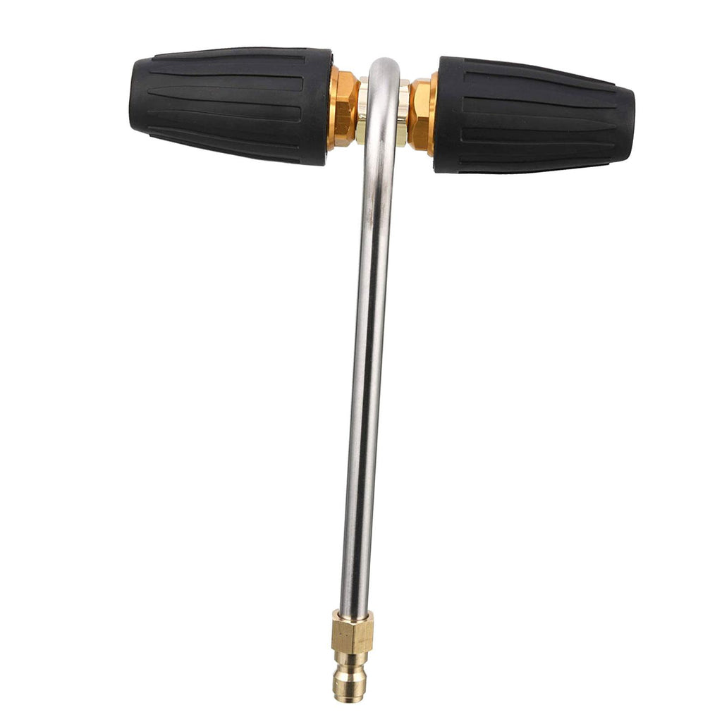 [Function]: The turbo nozzles convert a jet of rotating water into a standard pressure for powerful washing capabilities. Quickly and easily spray leaves and debris from the groove, effectively cleaning gutter and clogged drains.