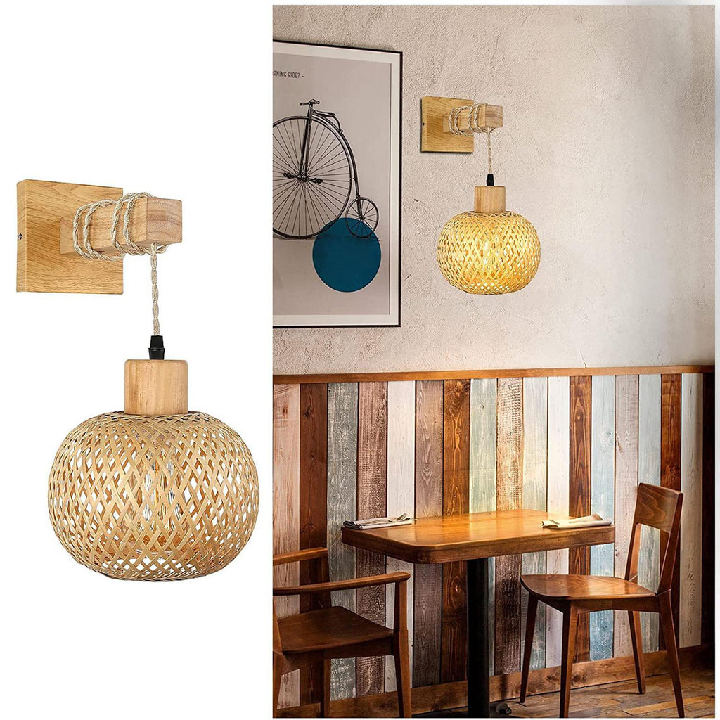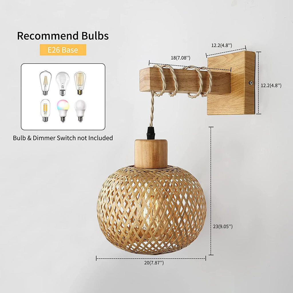 MODERN BAMBOO WOVEN WALL SCONCE: This farmhouse wall sconce is hand woven with high quality bamboo. It is equipped with 1 x Wooden Base.