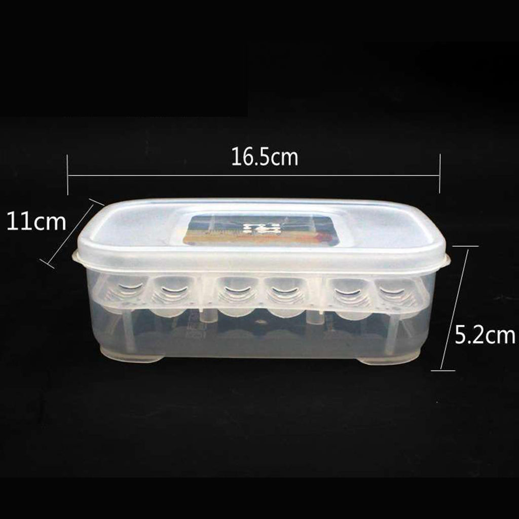 The lid is highly transparent and you can observe the condition of the eggs. Size: 16.5x11x5.2cm/6.50x4.33x2.05inch.
