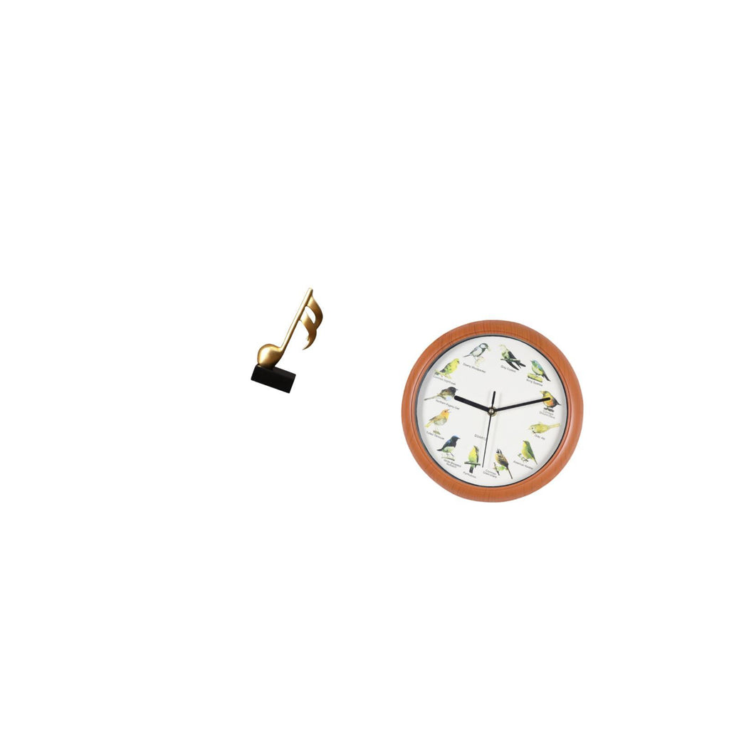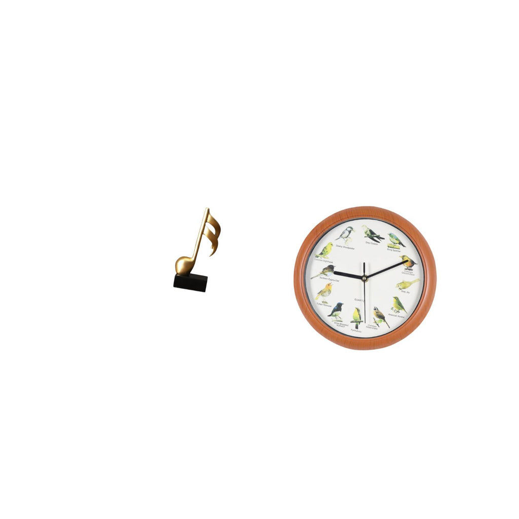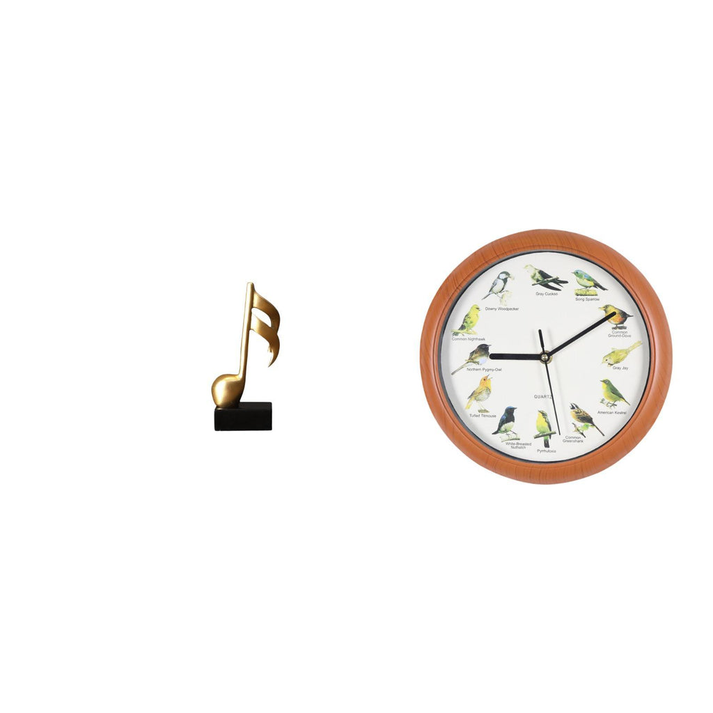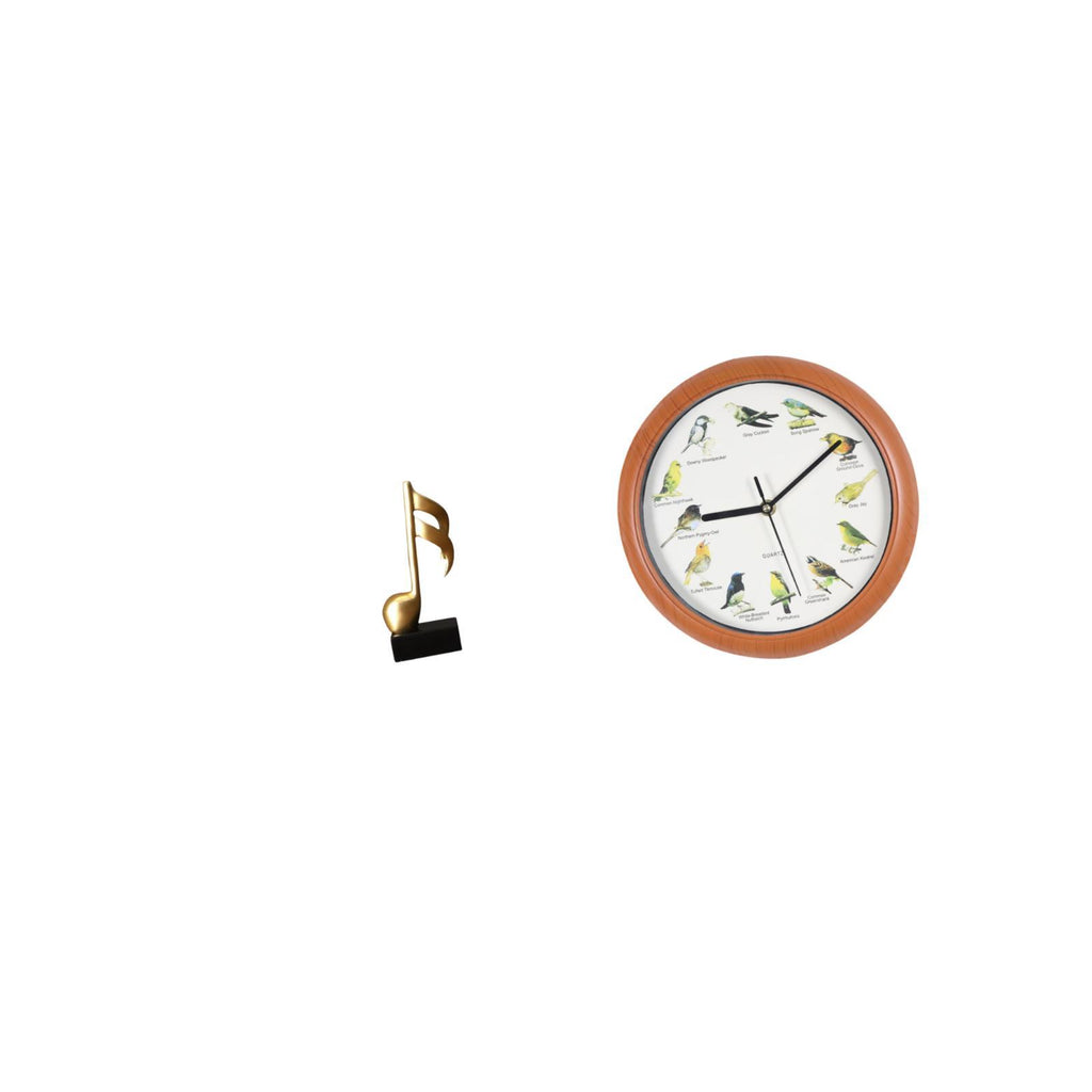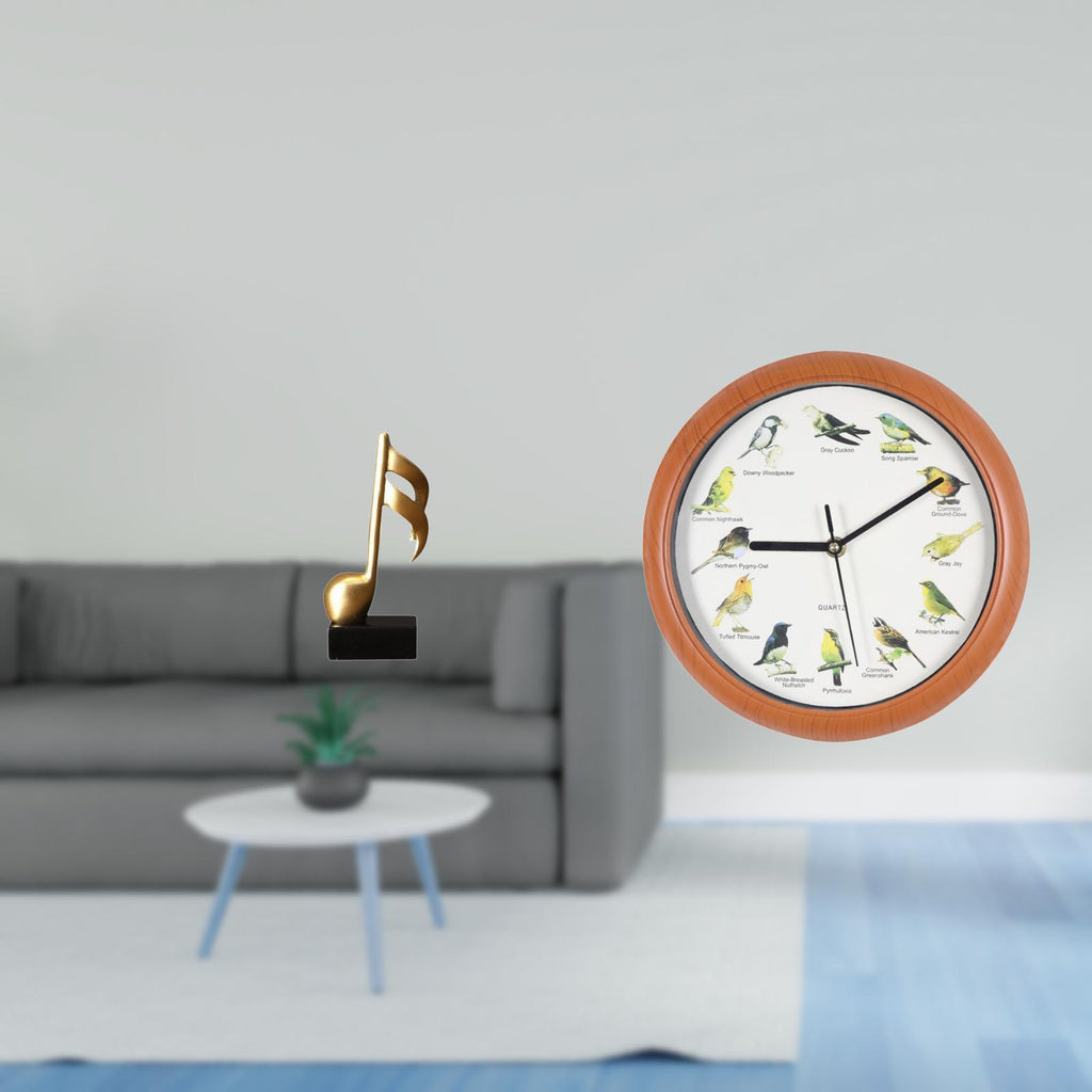 Resin Music Note Sculpture and Singing Bird Wall Clock Creative Tabletop Ornament and Decorative Hanging Clock for Desk Fireplace Kitchen Home Decor