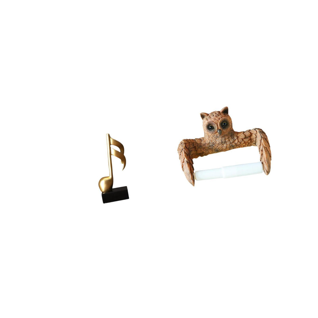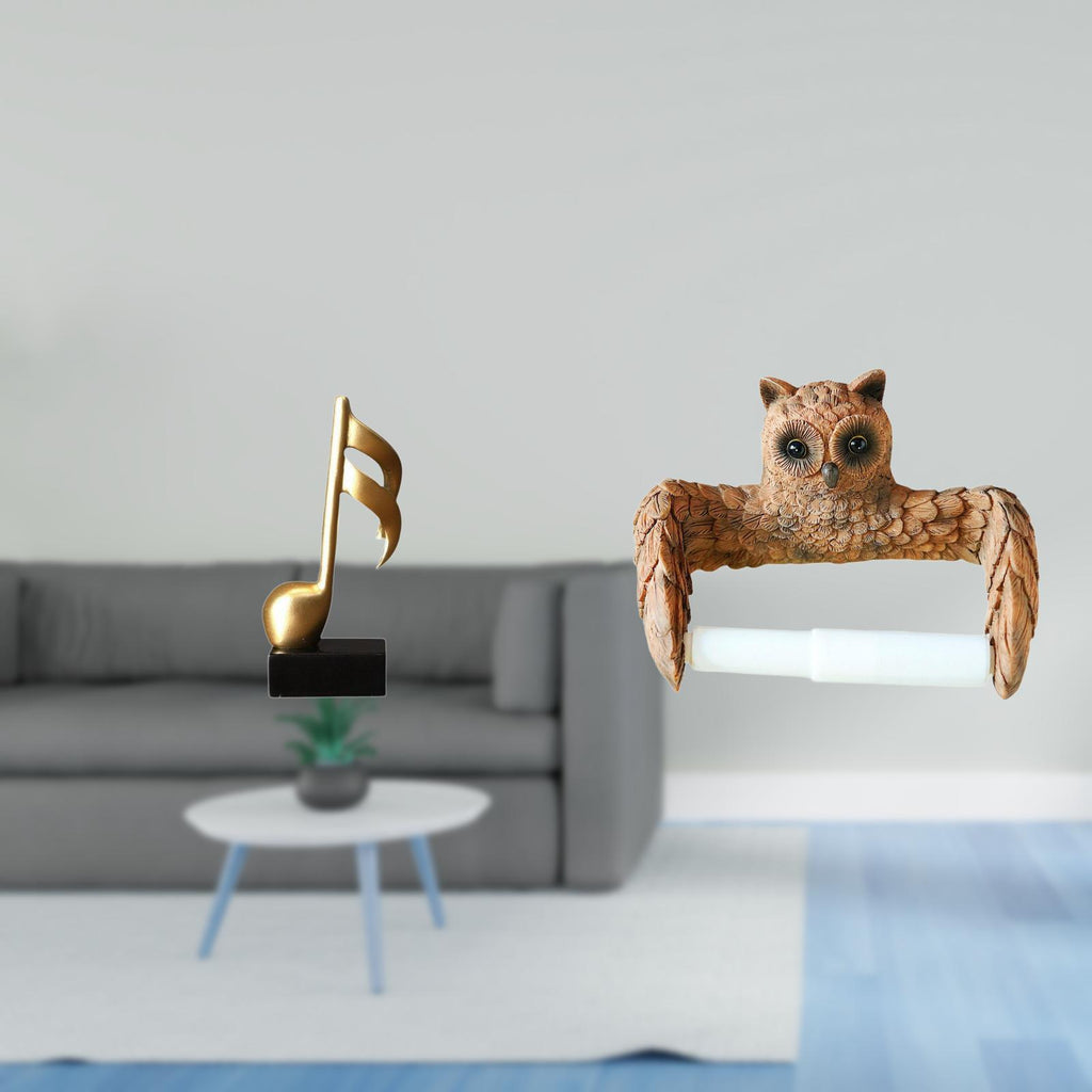 Resin Owl Music Note Sculpture Creative Tabletop Ornament Figurine Centerpiece Toilet Paper Holder Towel Organizer Roll Dispenser for Desk Fireplace Home Kitchen Housewarming Gift
