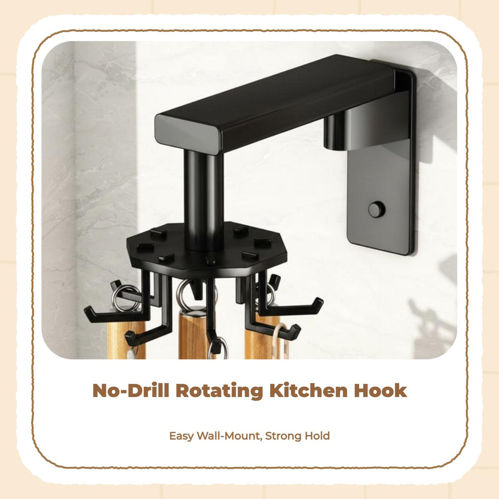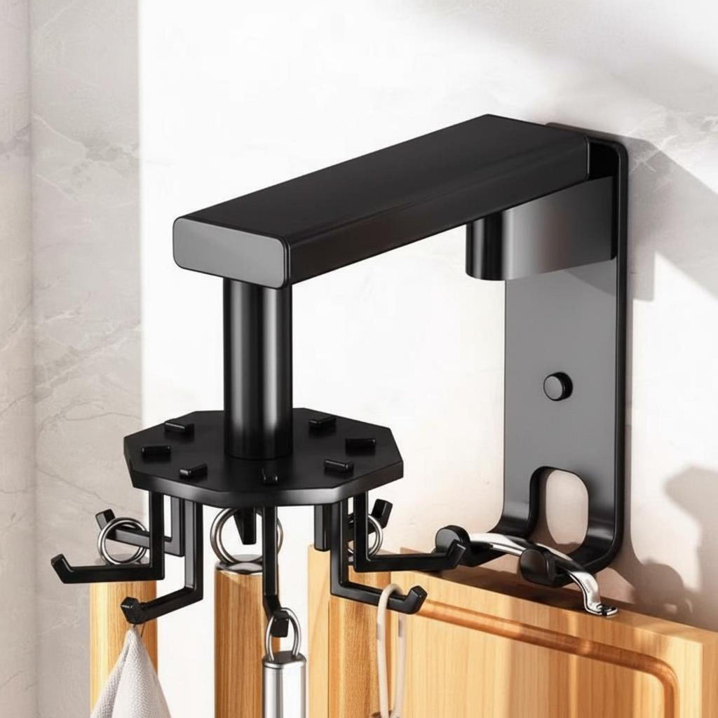 Rotating kitchen holders, peg utensil holder, space-saving storage rack BlackA 8 hooksA