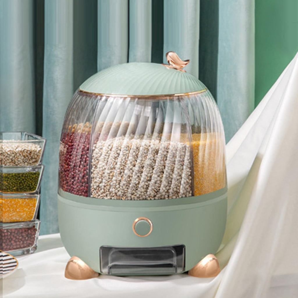LARGE CAPACITY: Rice Dispenser, classified storage, Rotatable base, very practical.