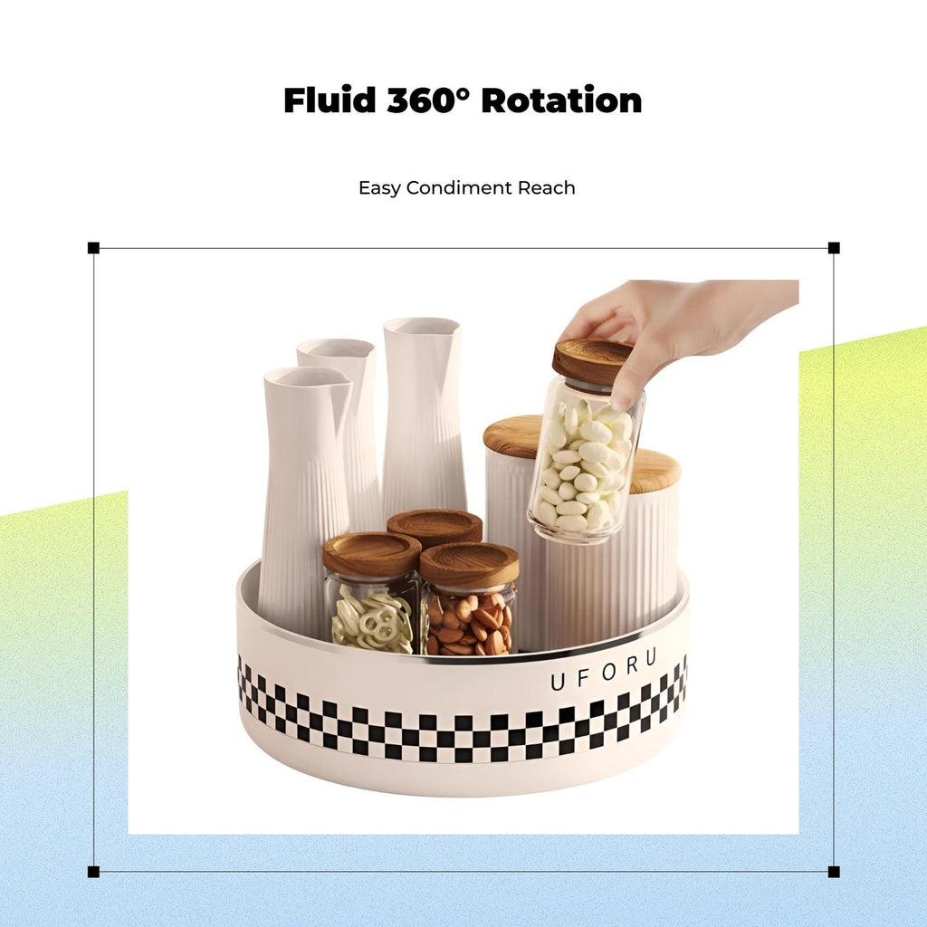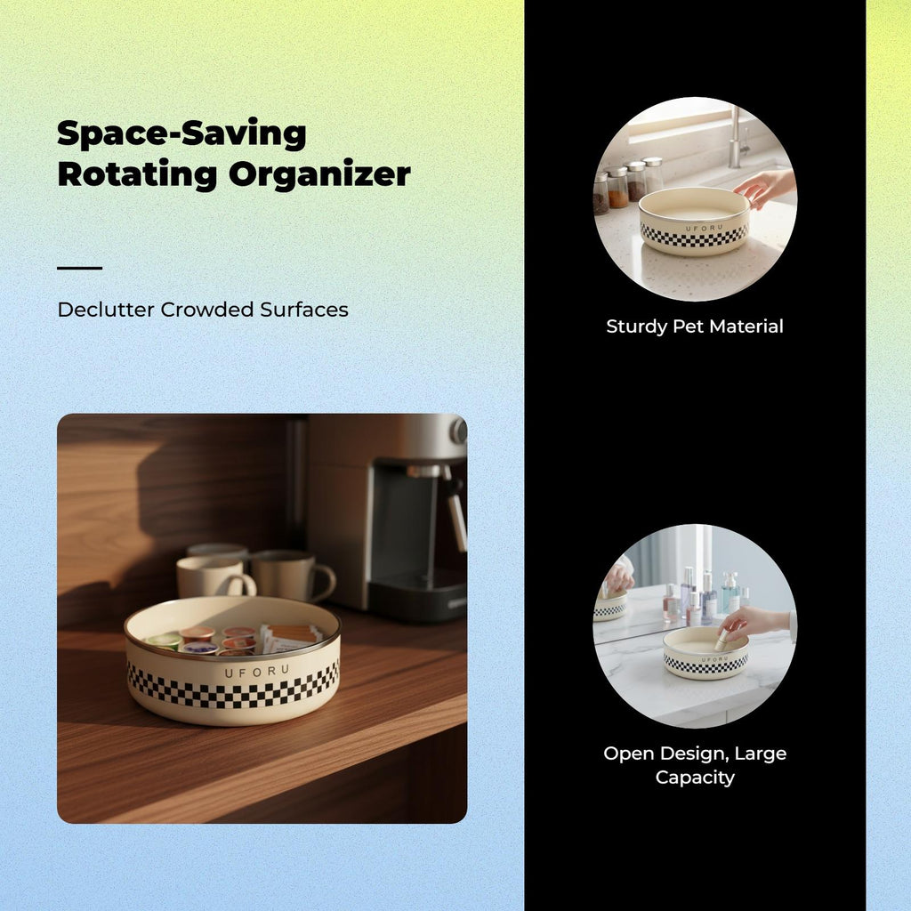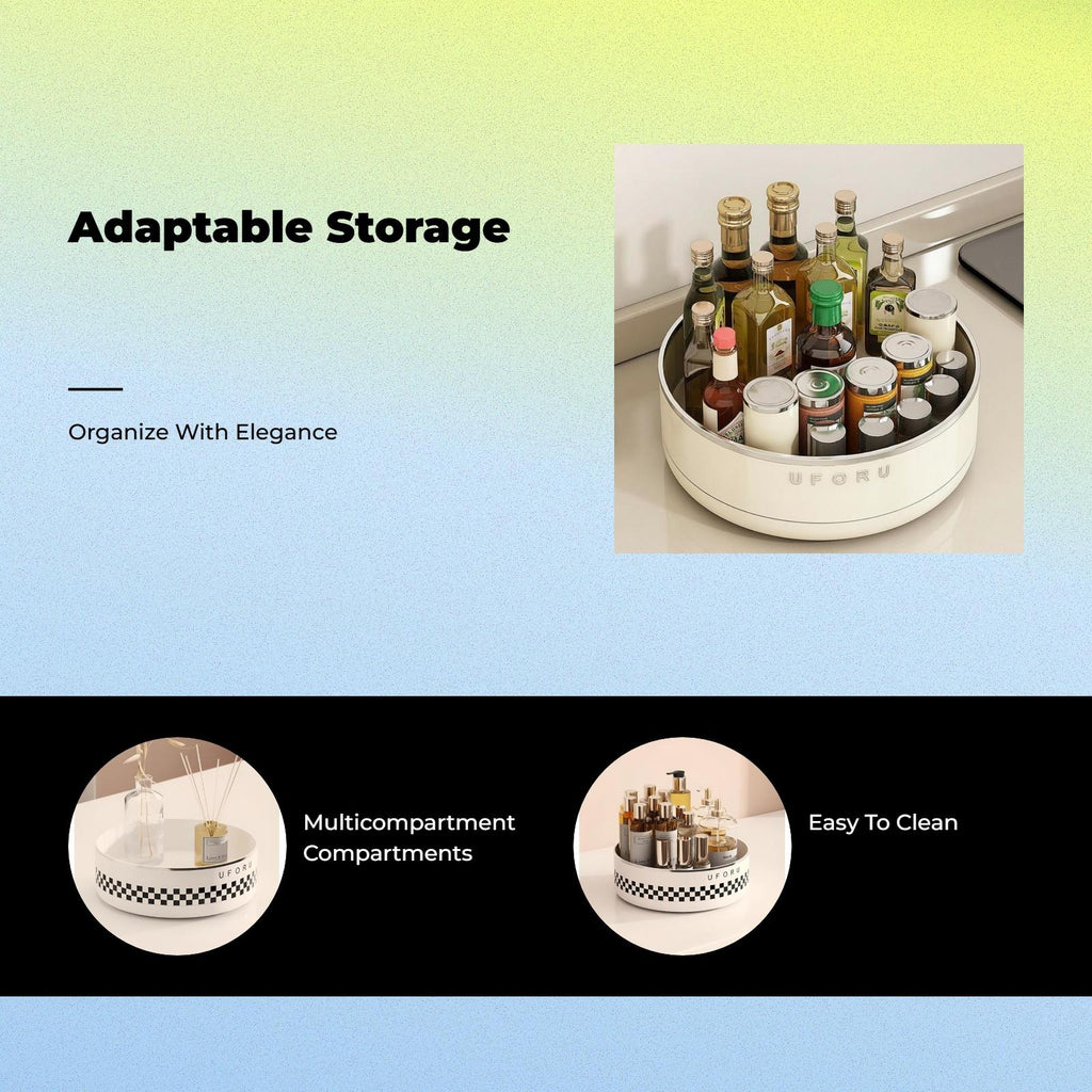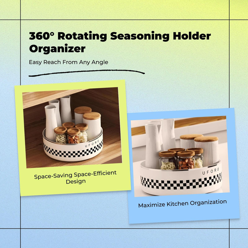 【Rotating Seasoning Organizer for Kitchen Organization】Efficiently organize your seasonings, condiments, and bottles with this multi-compartment rotating seasoning organizer, perfect for kitchen countertops, pantries, and dining tables.【Multi-Functional Storage Solution】Designed for easy reach and space-saving, this organizer holds various seasoning bottles to keep your kitchen neat and organized.【Sturdy and Easy to Clean】Crafted from robust materials, the rack is sturdy, easy to clean, and perfect for frequent use in kitchens, offices, and coffee stations.【Space-Saving Design Maximizes Capacity】Its space-efficient, compartmentalized design accommodates easily into small spaces and corners, maximizing storage without clutter.【Integrated Turntable for Convenient reach】The 360° rotating shelves ensure you can easily reach all your seasonings and condiments, making meal more efficient.