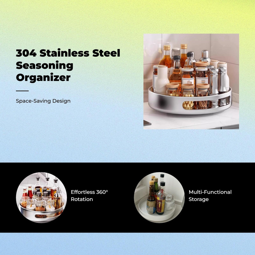 【Rotating Stainless Steel Seasoning Holder for Kitchen Organization】This versatile seasoning holder is crafted from 304 stainless steel and features a effortless rotating mechanism, making it easy to reach your seasonings and condiments while keeping your kitchen countertop organized.【Space-Saving Countertop Organizer】The space-efficient, freestanding design maximizes your kitchen space and is perfect for storing oil, salt, vinegar, and other condiments on your countertop or in a cabinet corner.【sturdy and Easy to Clean】Constructed from polished stainless steel, this seasoning holder is resistant to rust and simple to maintain, ensuring long use in your kitchen.【Versatile Multipurpose Storage】perfect for organizing seasonings, condiments, or even small kitchen reachories, this organizer keeps your space tidy and essentials easily reachible.【Practical and Stylish Addition】Modern and sleek, its design complements a variety of kitchen styles, blending practicality with visual appeal for any home kitchen.