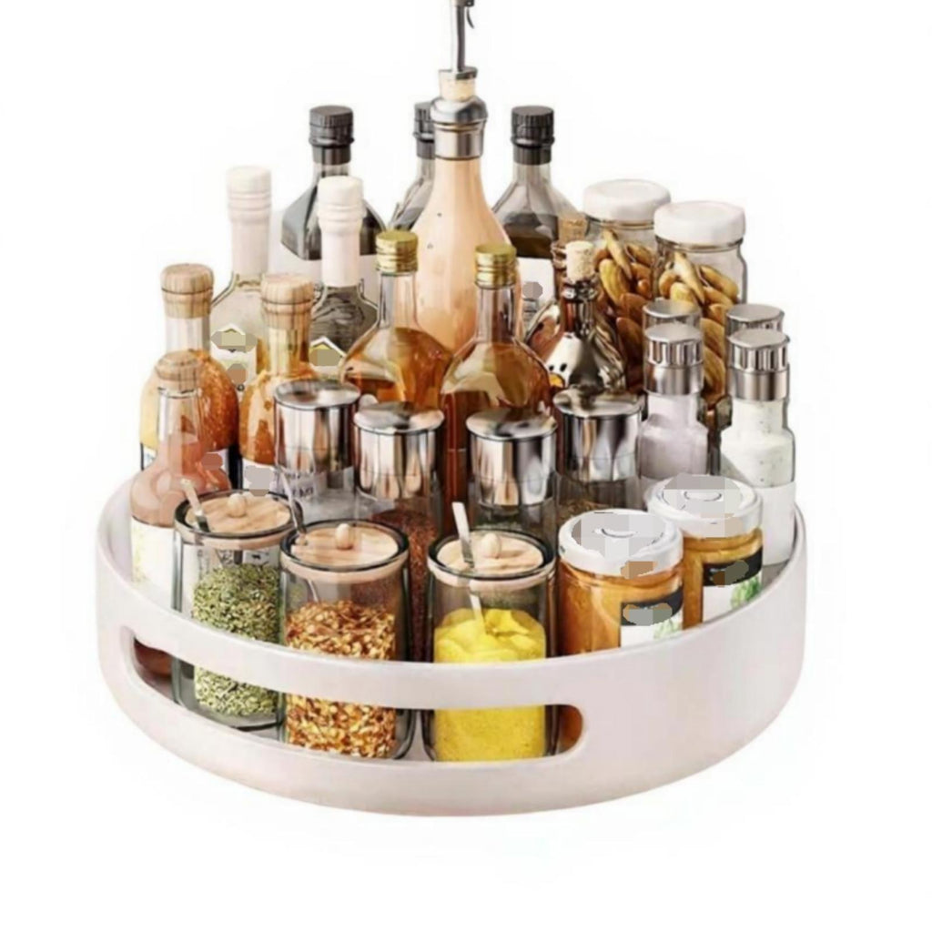 Rotating Stainless Steel Seasoning Holder, Countertop Organizer, Multipurpose Kitchen Storage Cream White 30cm