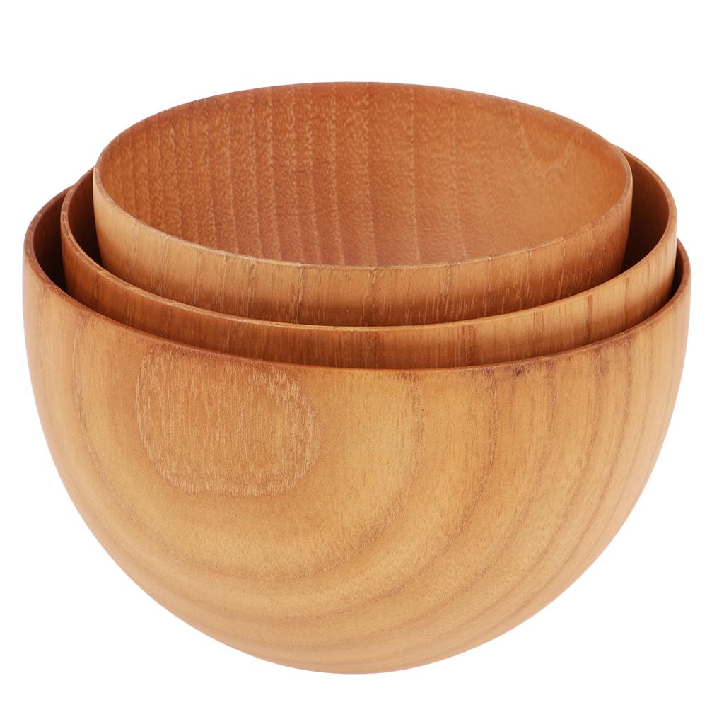 Maxbell Round Wooden Cereal Bowl Food Container Camping Dinner Lunch Tableware M