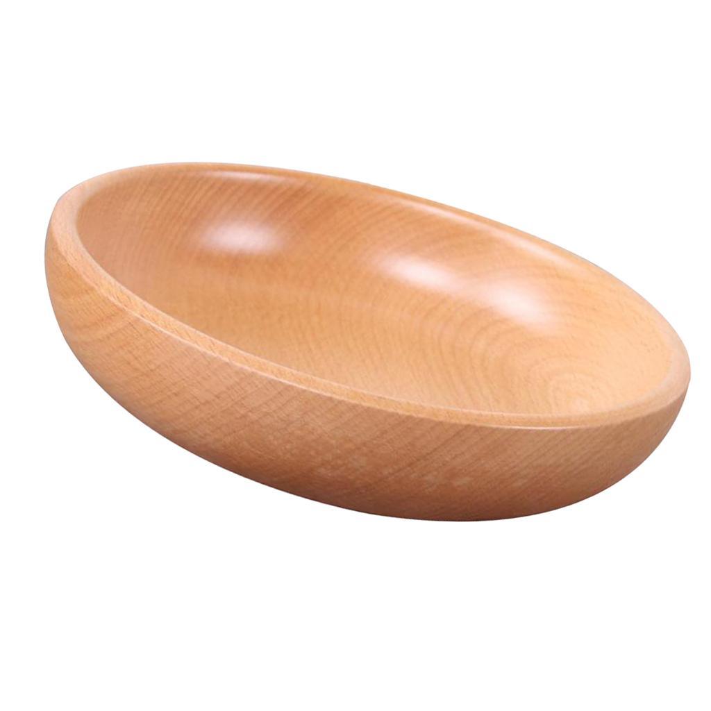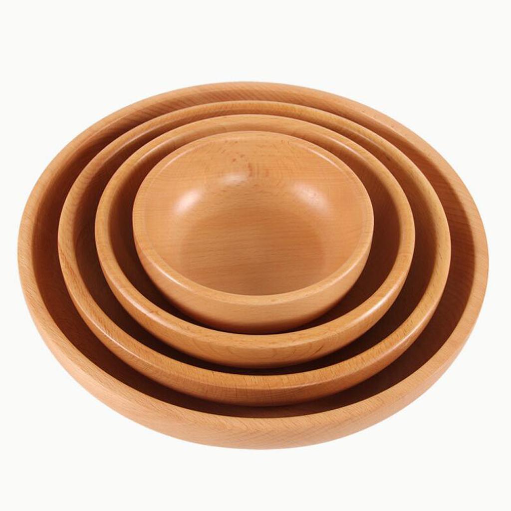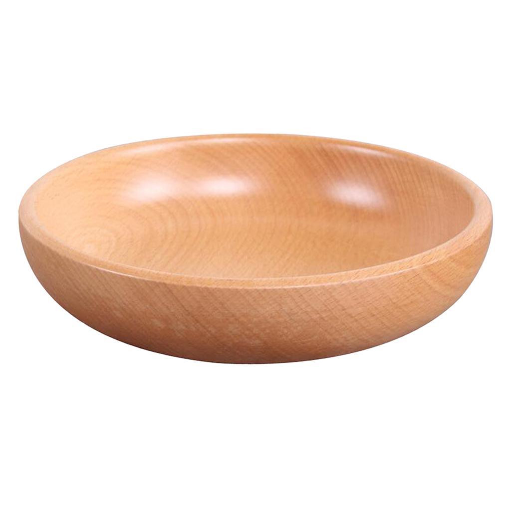 Maxbell Round Wooden Salad Bowl Refreshments Fruit Plate Noodles Rice Container L