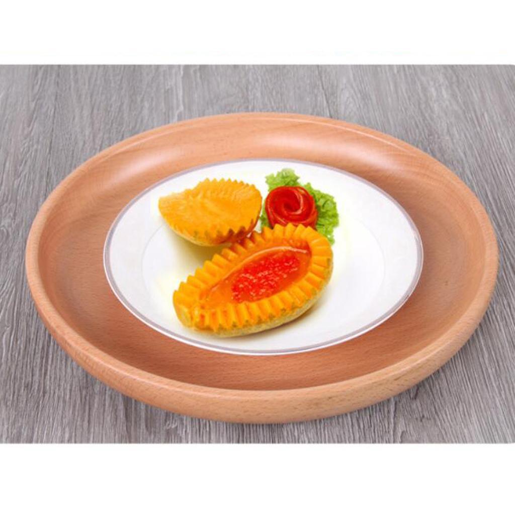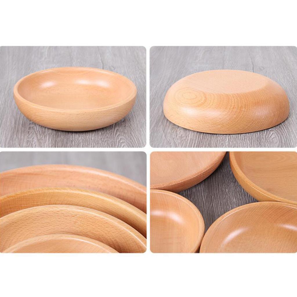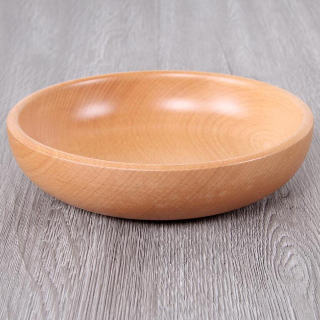Maxbell Round Wooden Salad Bowl Refreshments Fruit Plate Noodles Rice Container L