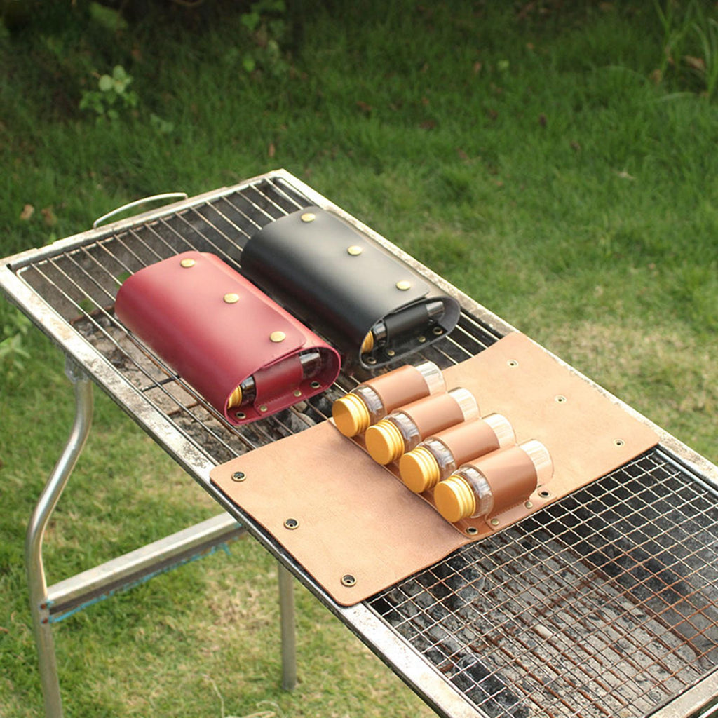 Material: The seasoning bag is made of sturdy PU Leather, which is durable and tear resistant. The spice jars included in the package lightweight and easy to carry out.