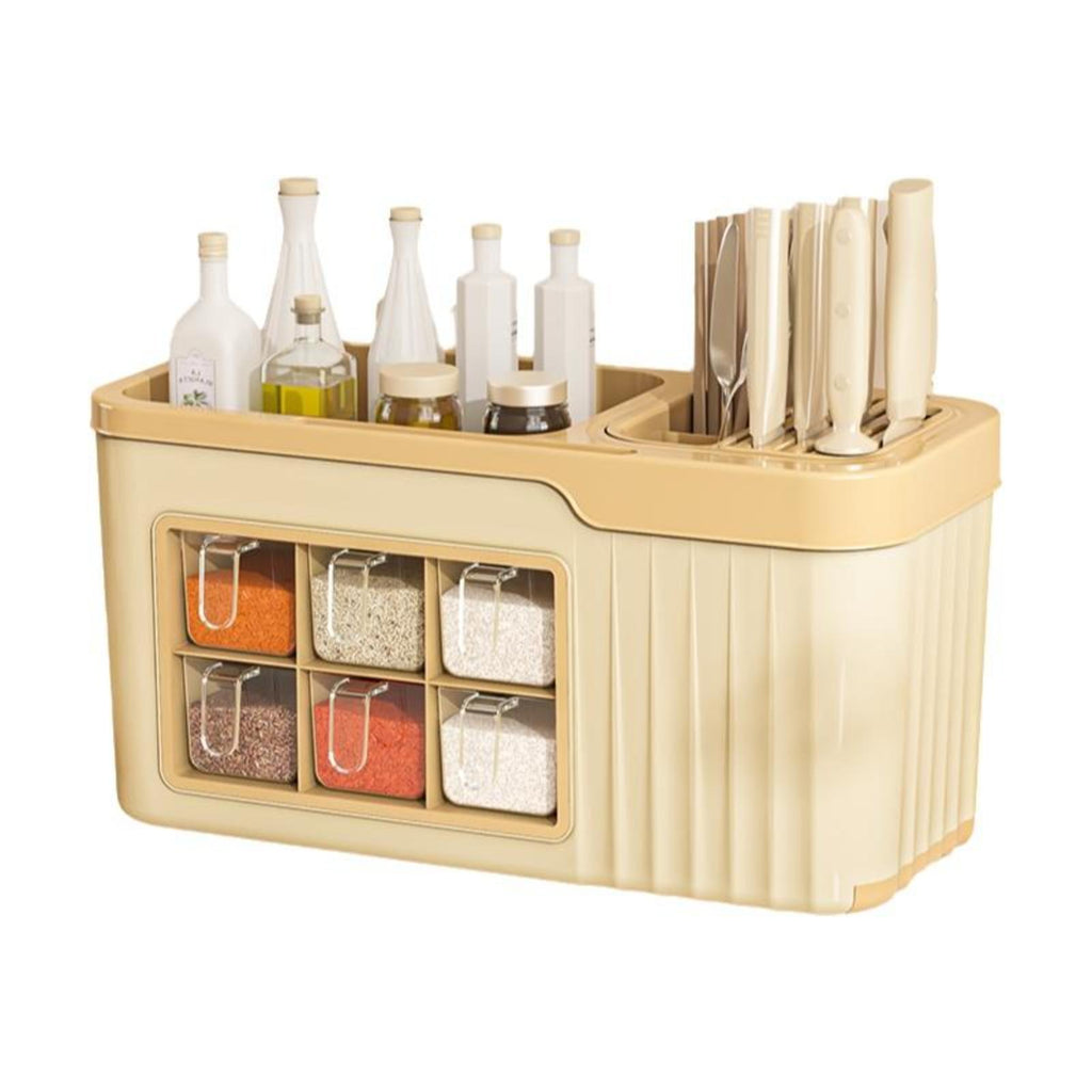 Seasoning Box Set, Multi-Function Seasoning Organizer, Kitchen Storage Rack Cream White 6 Grid with Holder