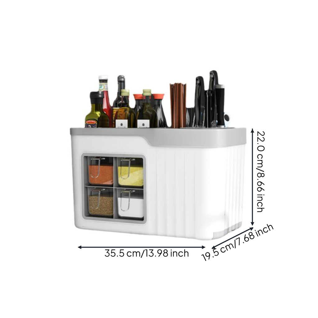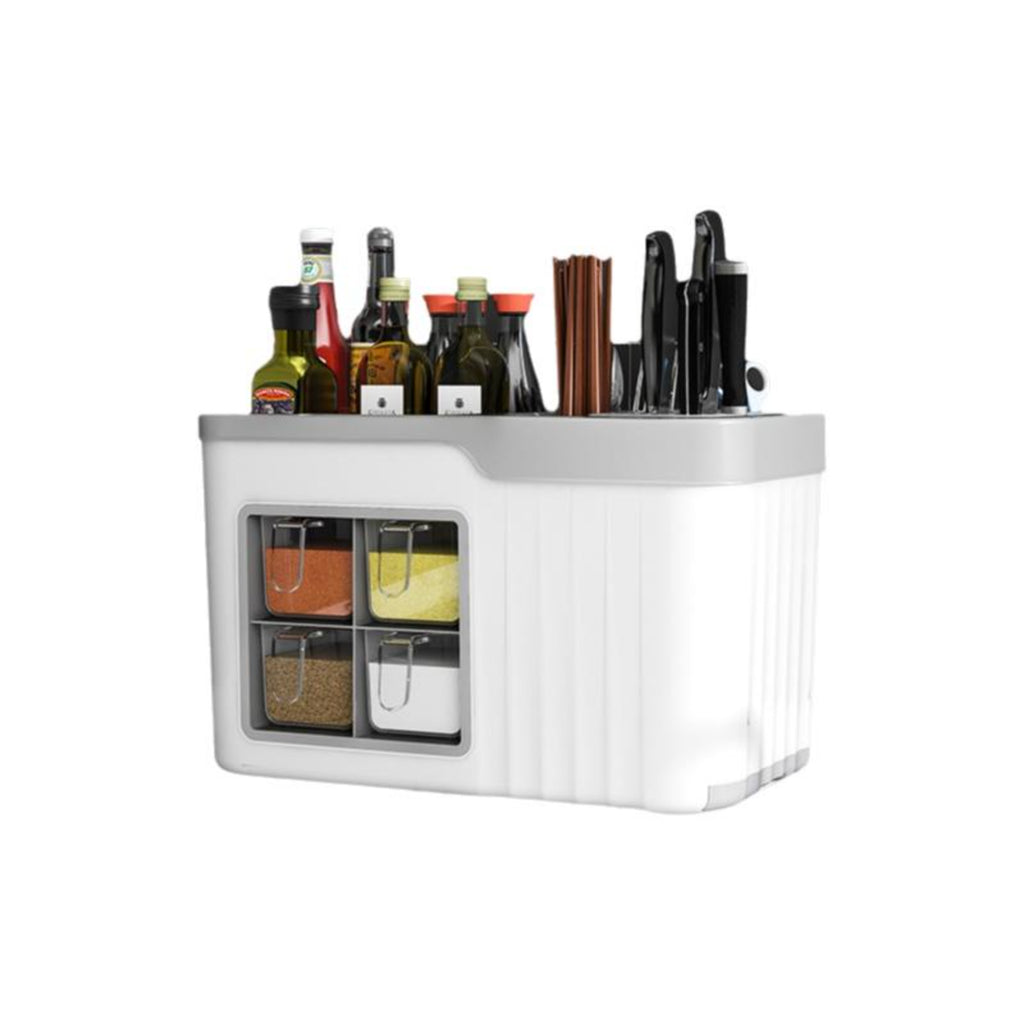 Seasoning Box Set, Multi-Function Seasoning Organizer, Kitchen Storage Rack Gray WhiteA 4 Grid with HolderA