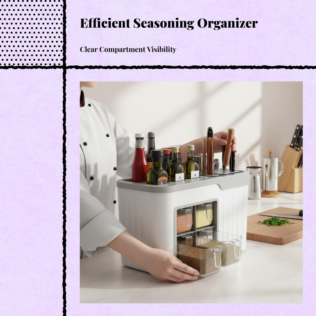 【Multi-Function Seasoning Box Set for Kitchen Organization】This seasoning box set combines a seasoning organizer, storage rack, and condiment containers, making it perfect for keeping your kitchen neat and your seasonings within close at hand.【High-Quality and sturdy Material】Made from high-quality materials, this seasoning organizer is built for long use and dependable performance in common cooking.【Practical and Versatile Design】With multiple compartments and a holder, this kitchen storage rack is perfect for organizing a variety of condiments, utensils, and kitchen tools.【Space-Saving and Easy to Clean】Its space-efficient design accommodates well on countertops or in cabinets, and the removable containers with polished surfaces make cleaning effortless.【Suitable for Various Settings】perfect for home kitchens, restaurants, family meals, and holiday gatherings, this seasoning box set improves cooking effectiveness and organization.Specification: