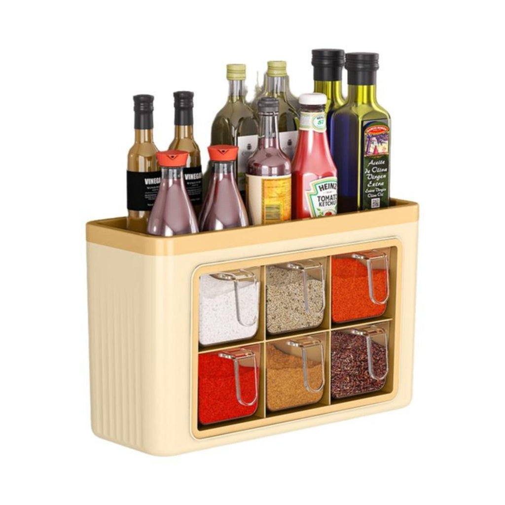 Seasoning Box Set, Multi-Function Seasoning Organizer, Kitchen Storage Rack Milk Coffee 6 Grid Wall-mounted