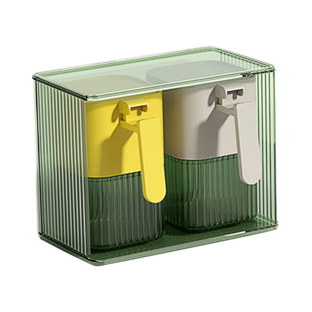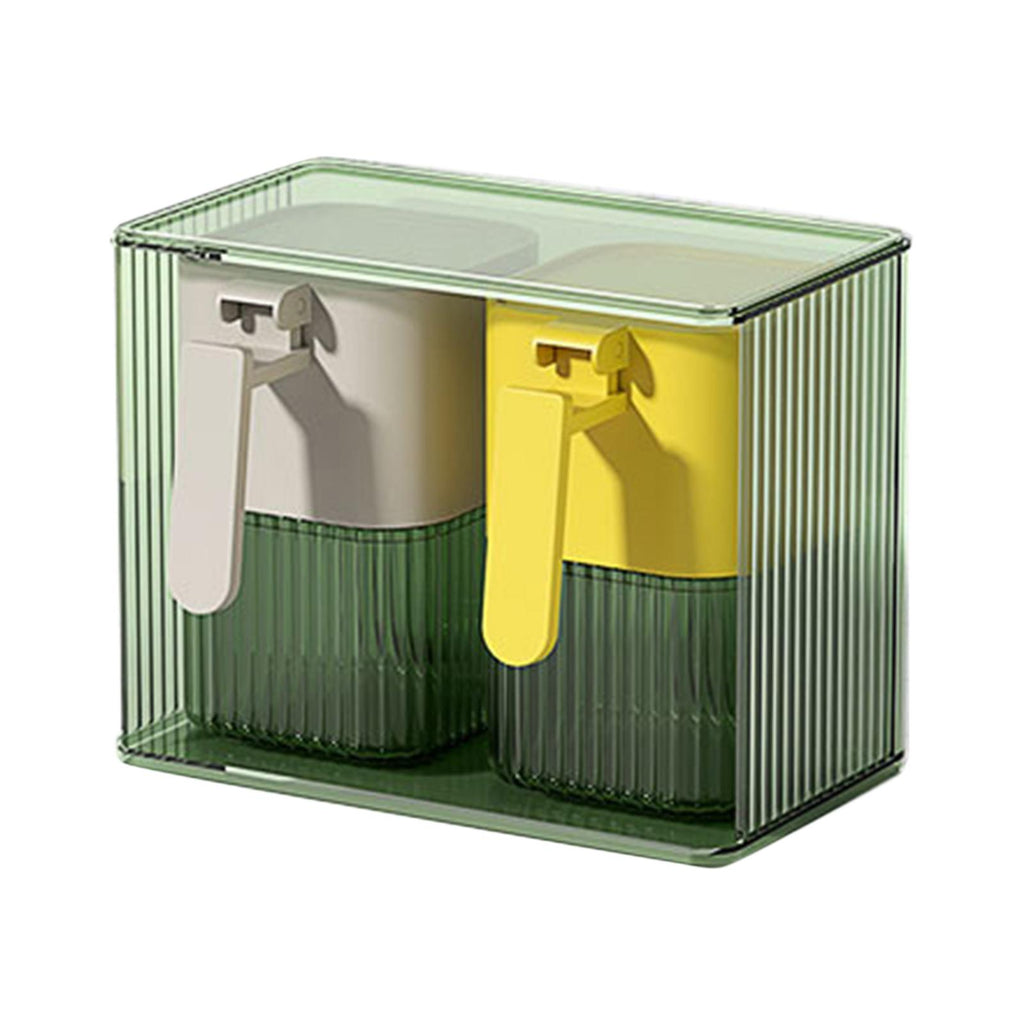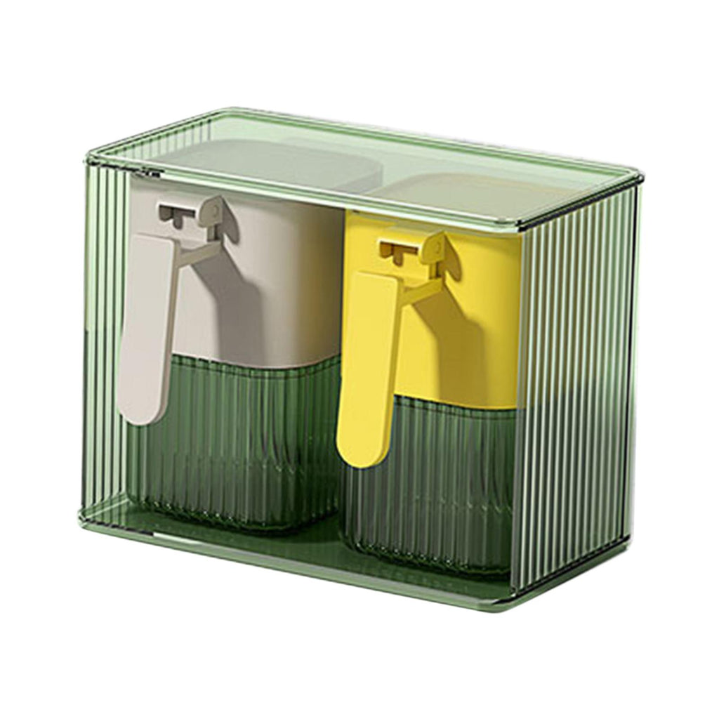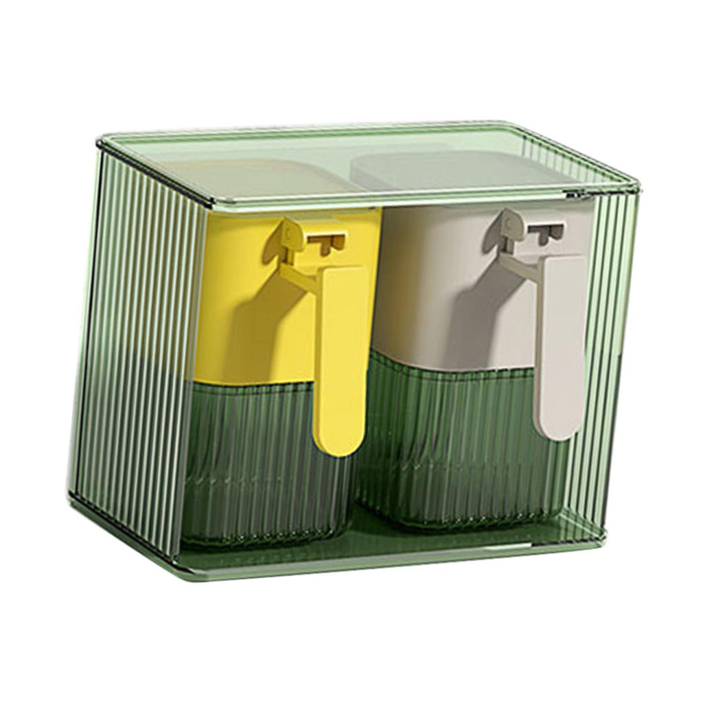 Maxbell Seasoning Box Set with Cover and Spoon Condiment Jars for Spice Sugar Salt 2 Grids