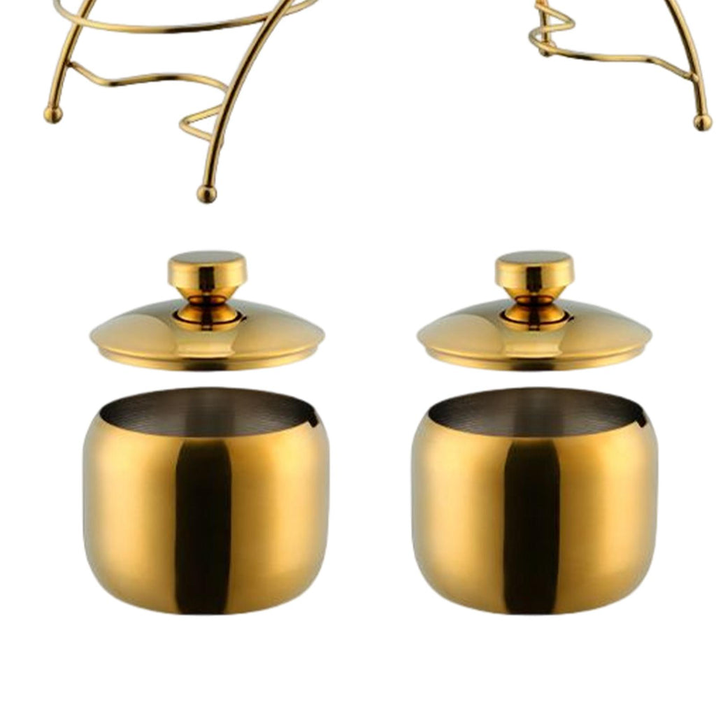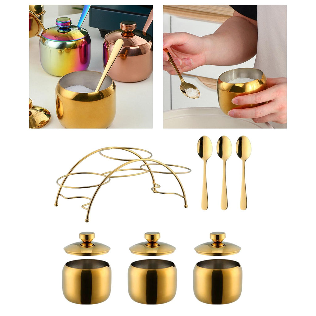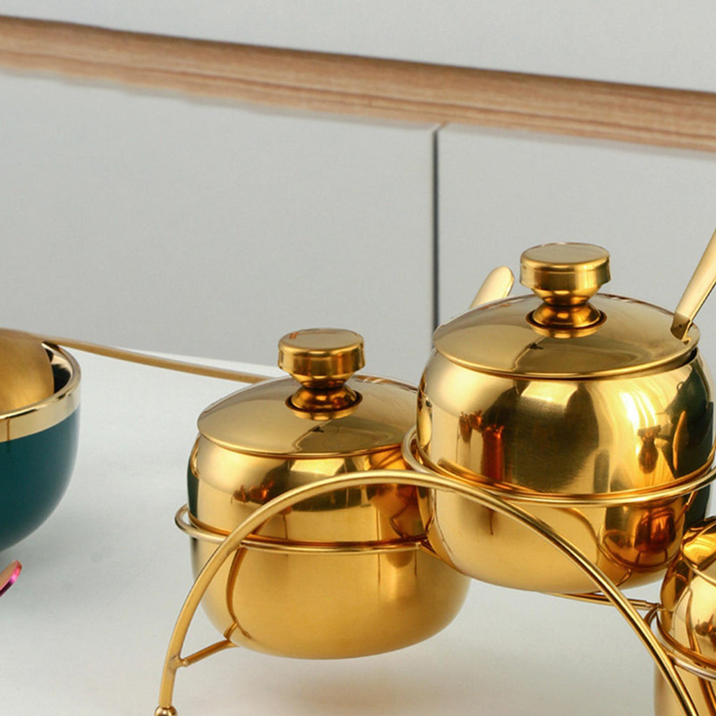 Maxbell Seasoning Jar with Lid Spoon Holder Stainless Convenient Modern for Kitchen Gold