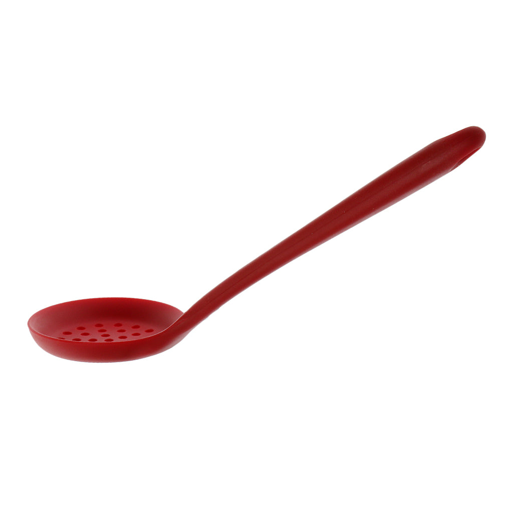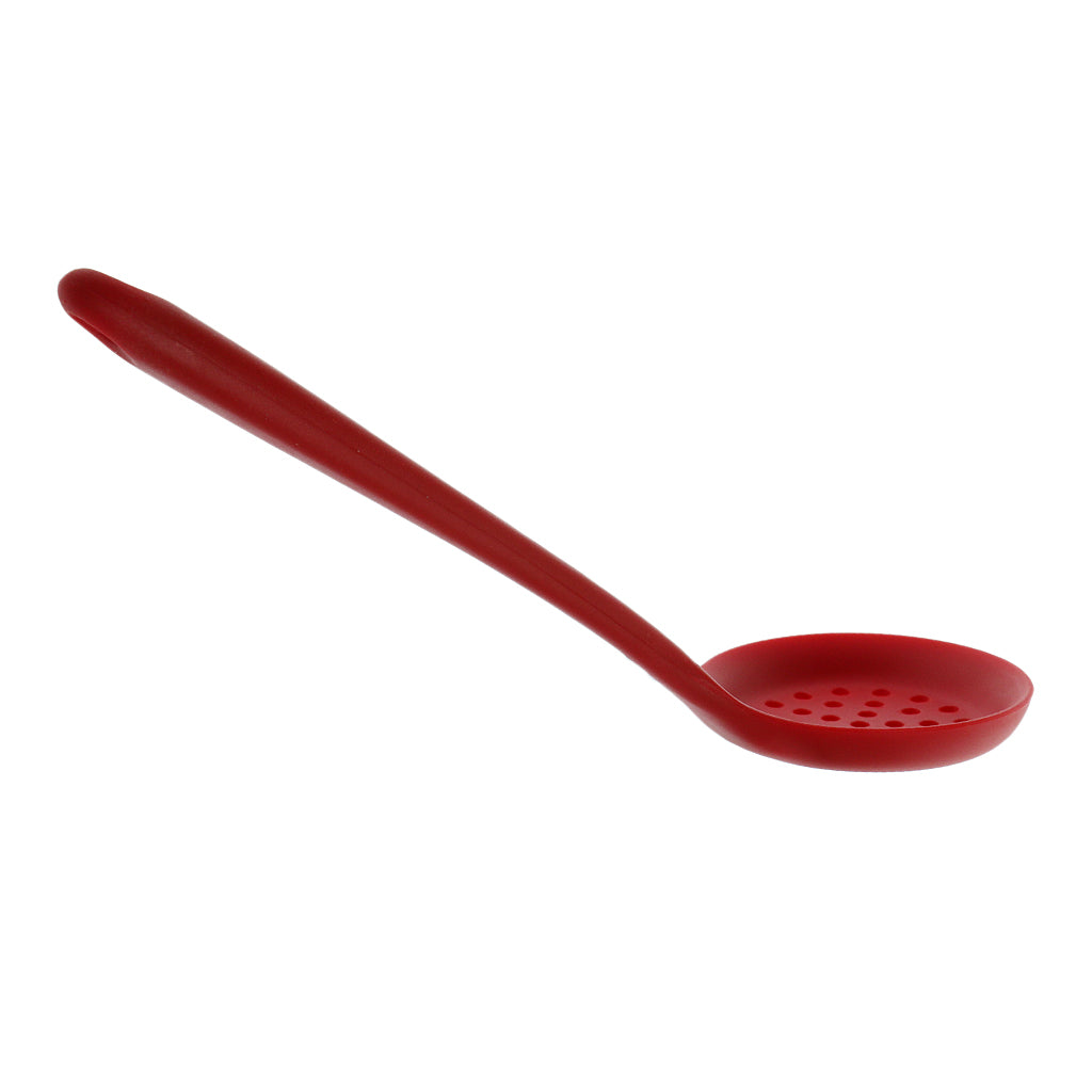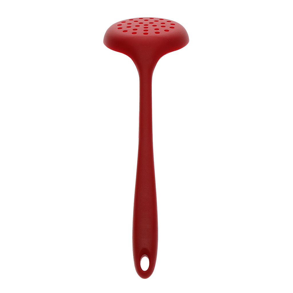 Max Silicone Colander Filter Soup Ladle -Long Handle W Hole Kitchen Red
