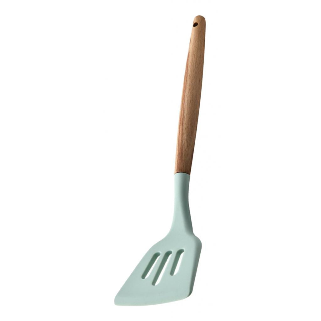 Maxbell Silicone Non Stick Kitchen Cooking Utensil Set Wooden Handle Slotted Turner