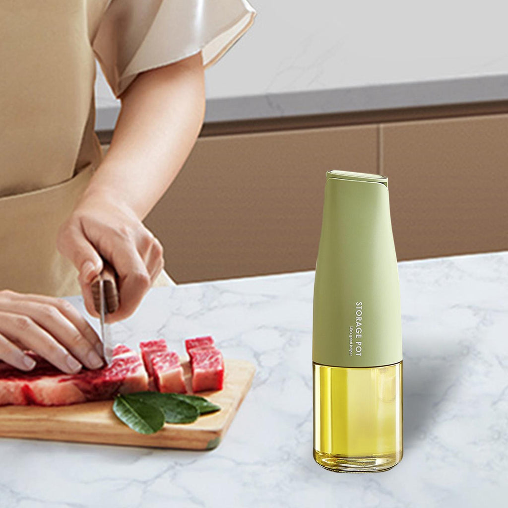 KEEP TIDY: Our cooking oil dispenser is made of glass, with silicone cap, works with effect that greatly avoid messing up your kitchen and ensure the freshness of liquid stored. Making your kitchen countertop still stays rid up at all time.