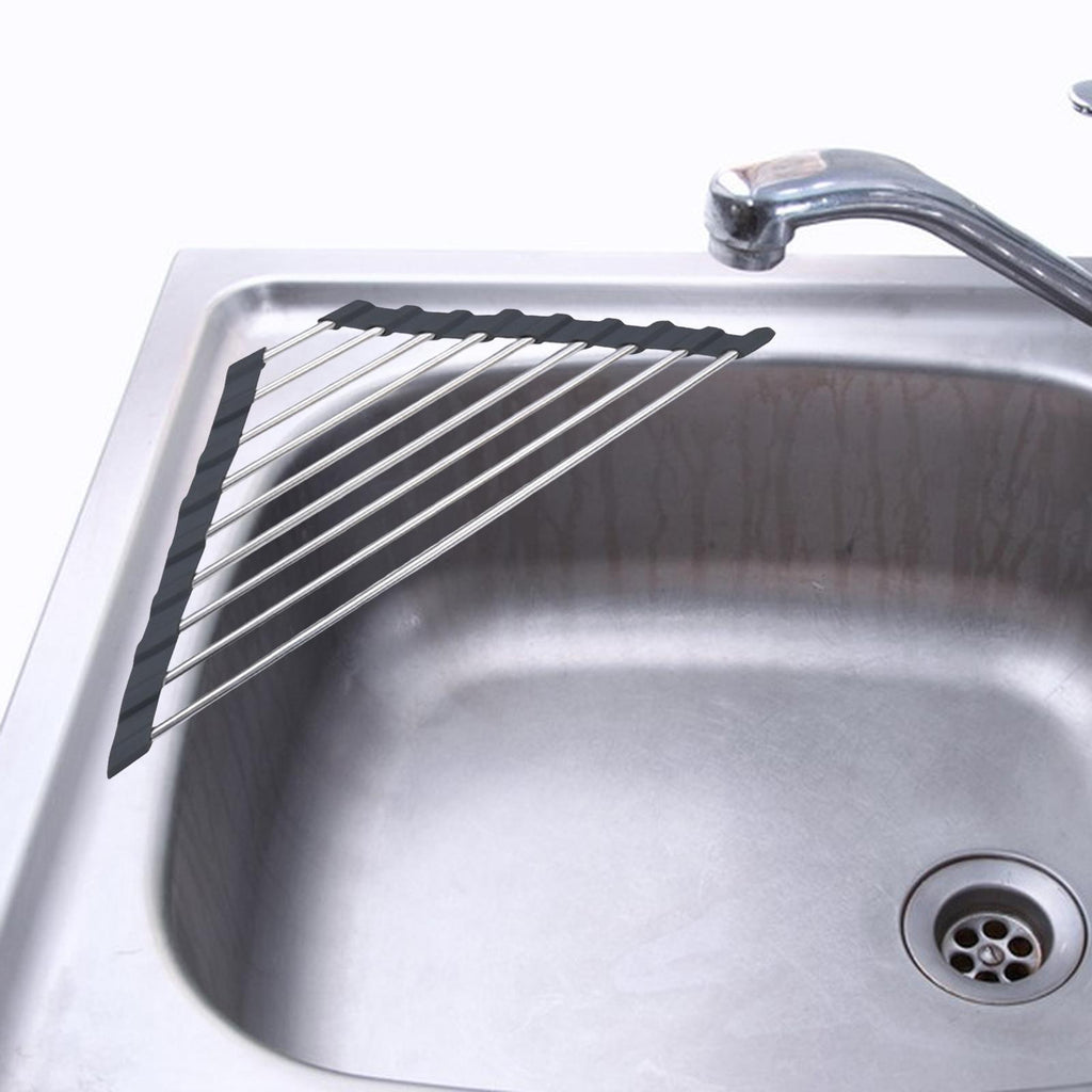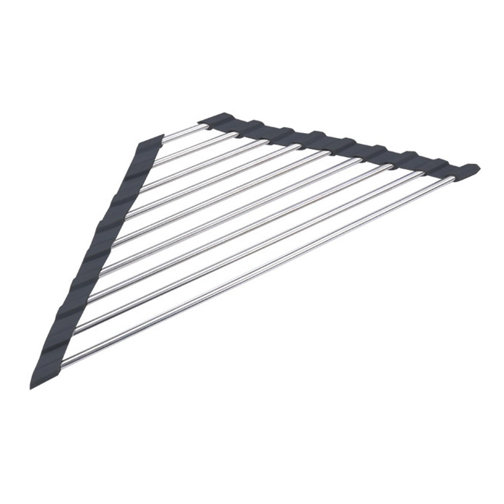 Maxbell Stainless Steel Foldable Corner Sink Rack for Laundry Room Kitchen Fruits Black