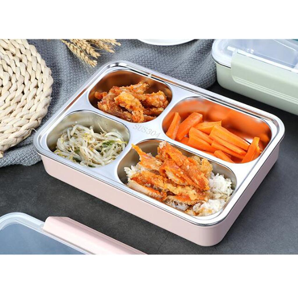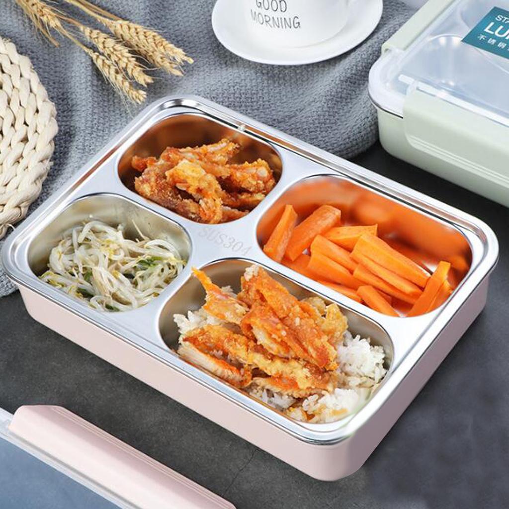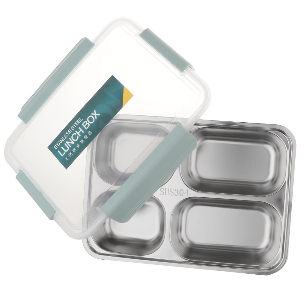 Maxbell Stainless Steel Lunch Box Dinnerware Kids Food Container Blue M four case