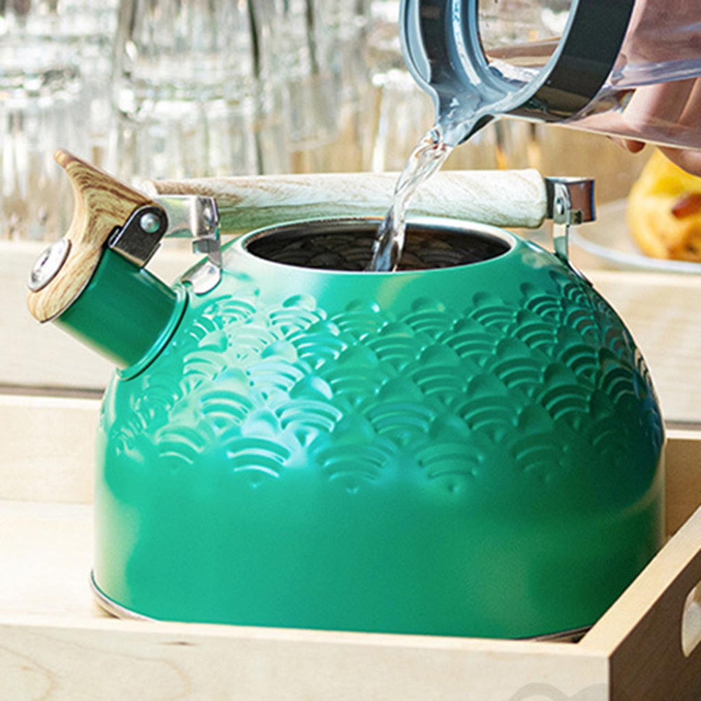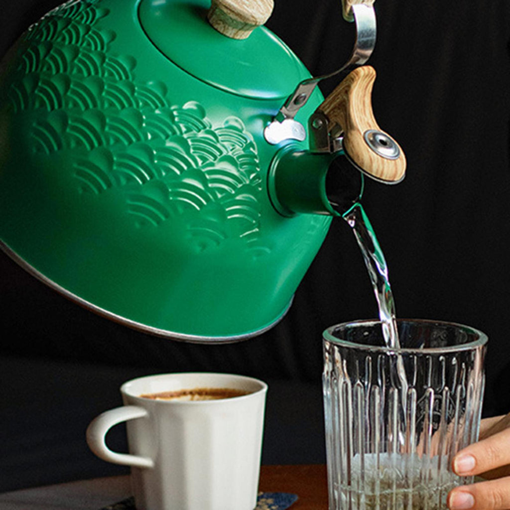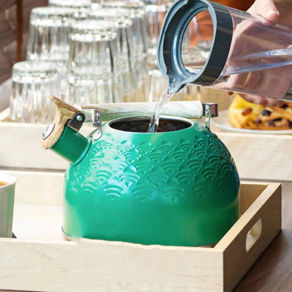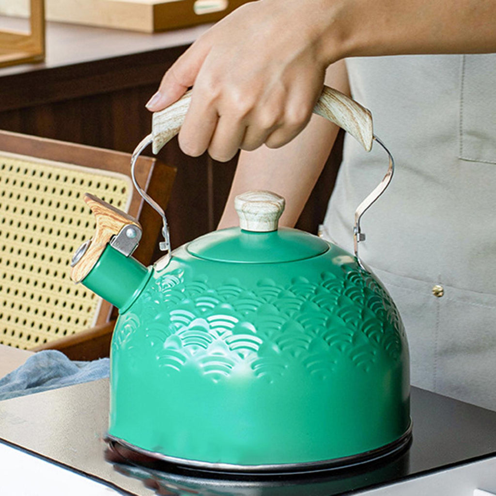 【Suitable for various stoves】: The stainless steel whistling kettle is suitable for any heat source, including induction cookers, electric stoves, and halogen stoves