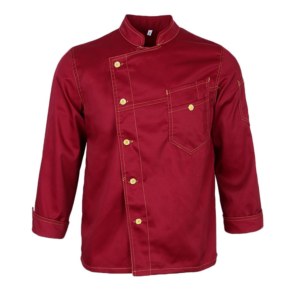 Maxbell Stitched Chef Jacket Coat Hotel Waiters Kitchen Uniform Long Sleeves L Red