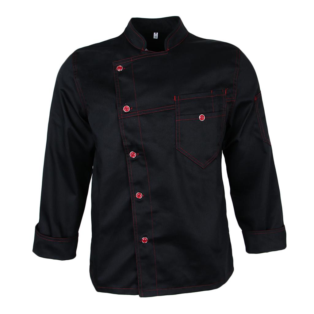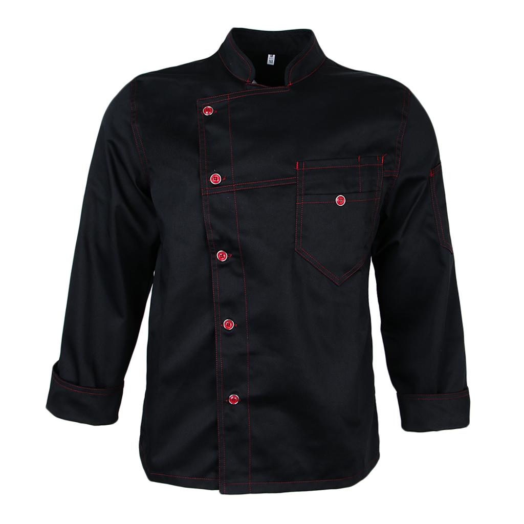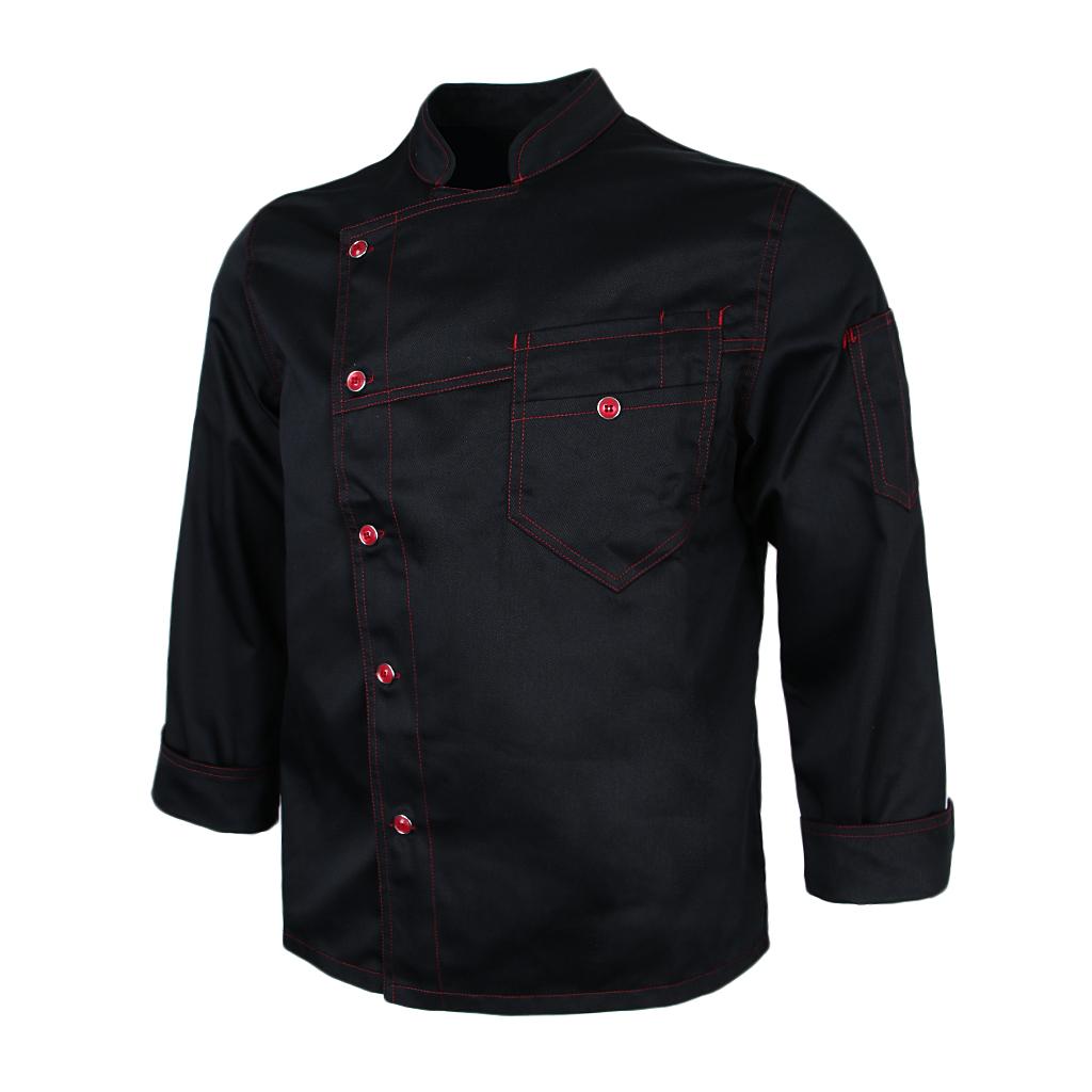 Maxbell Stitched Chef Jacket Coat Hotel Waiters Kitchen Uniform Long Sleeves M Black