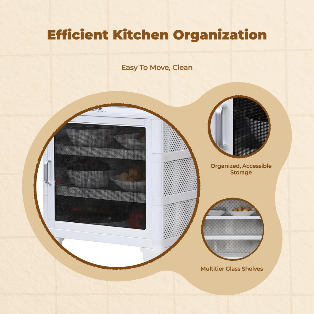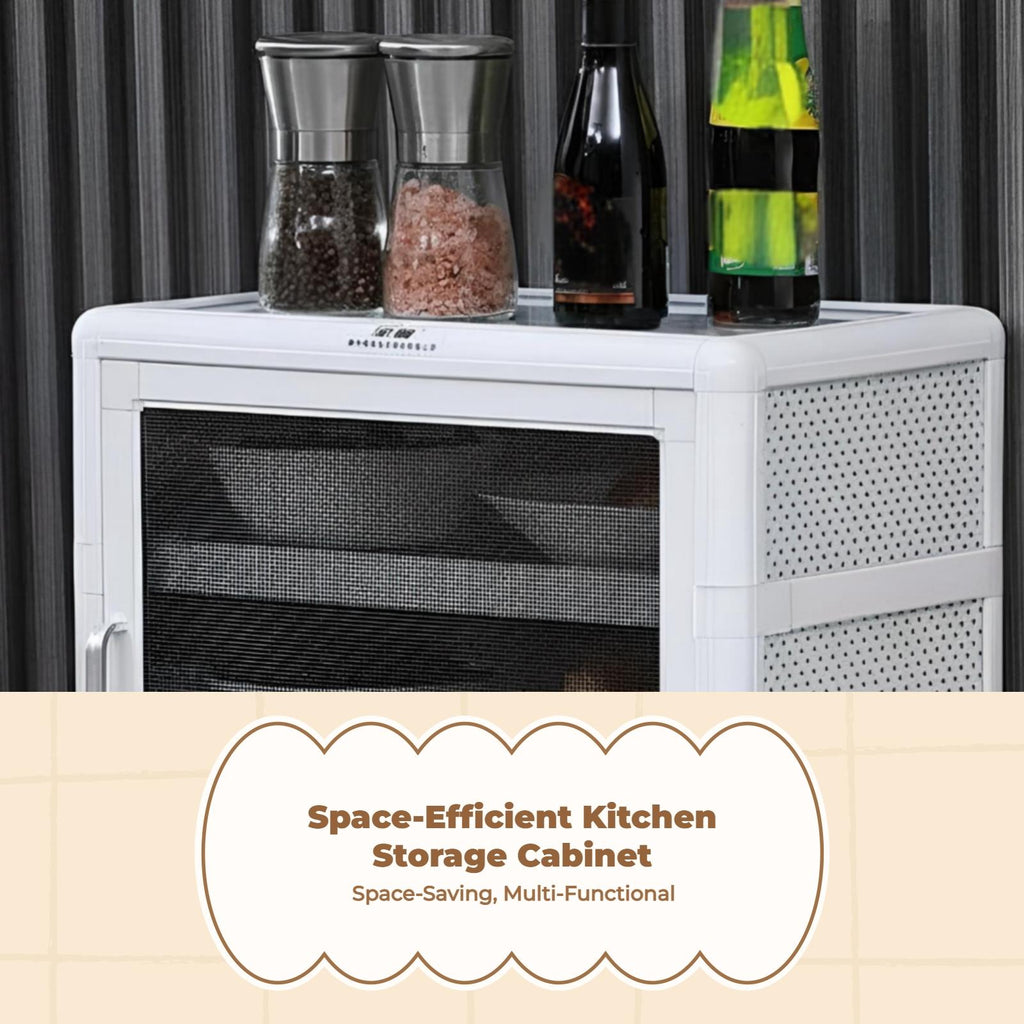 【Adaptable Storage Cabinet for Kitchen and Home】This space-saving storage cabinet combines the functions of a pantry cabinet, desktop organizer, and countertop cupboard, making it perfect for kitchens, dining rooms, offices, and beyond. Its breathable design helps keep your stored items crisp and organized.【High-Quality and Sturdy Construction】Built from robust materials, this storage cabinet is made to last, providing dependable performance for common storage.【Versatile and Practical for Multiple Uses】Perfect for storing dishes, leftovers, condiments, and tea sets, this organizer accommodates effortlessly on countertops, desktops, or small spaces.【Space-Saving and Multi-Functional】With its space-efficient footprint, this cabinet maximizes upright storage to keep your kitchen or workspace neat and organized.【Easy to Use and Maintain】Designed for convenience, this cabinet is simple to clean and maintain, making it a practical choice for any home or office.Specification: