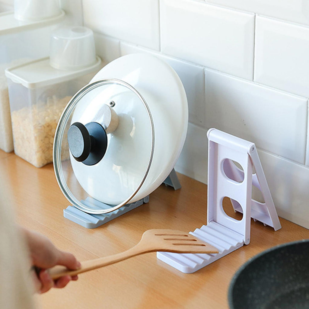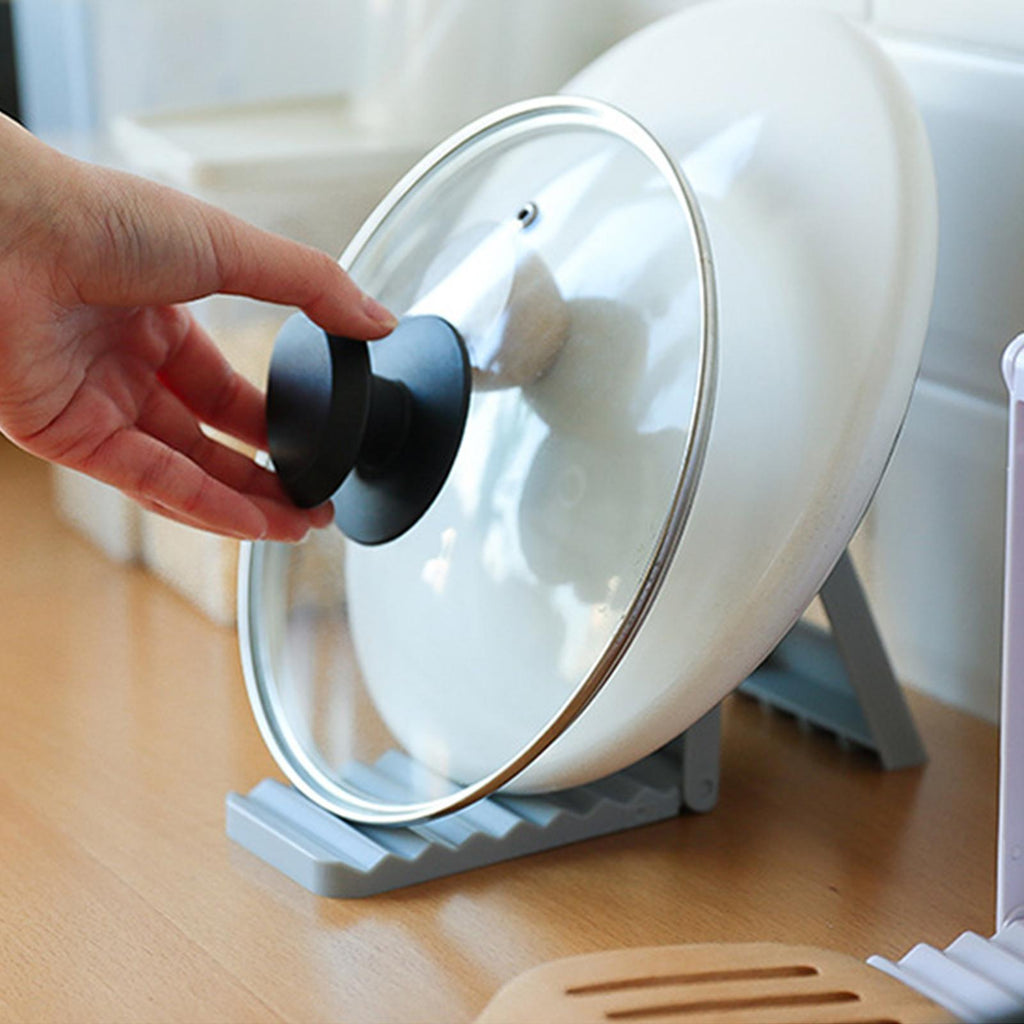 Multifunctional: This pot lid holder can hold spoons, pot lids, spatulas, ladles. And the pot covers of different sizes are applicable.