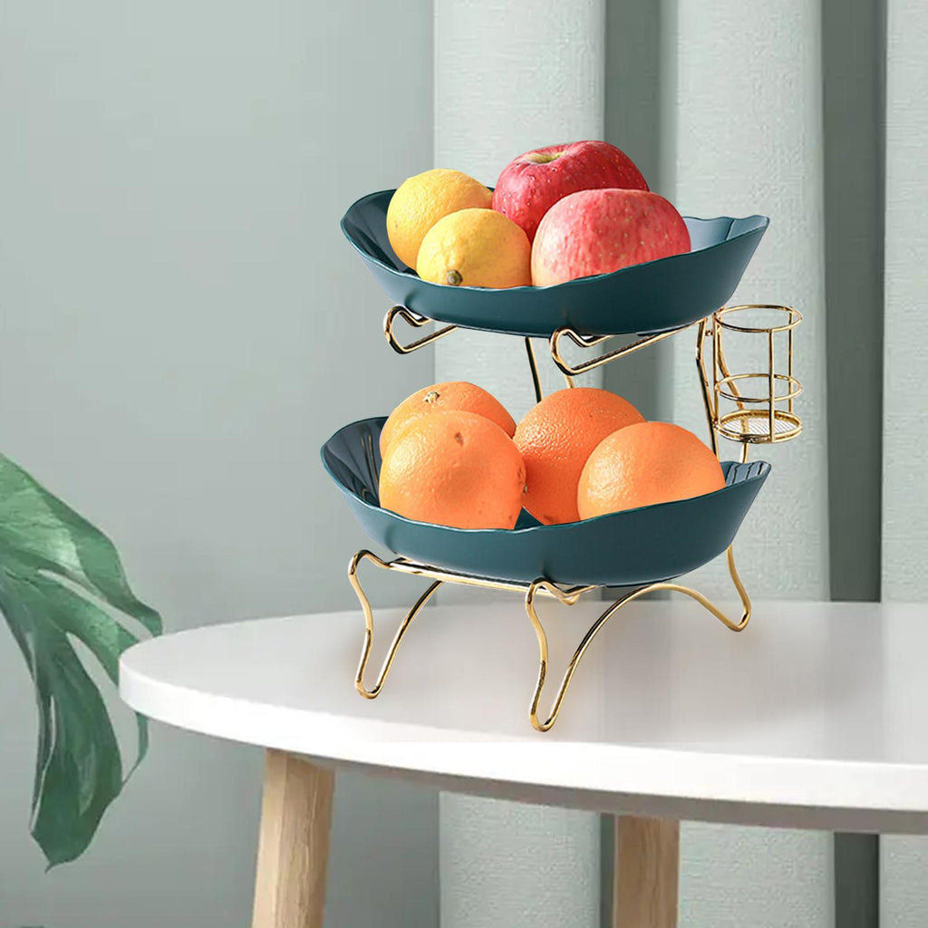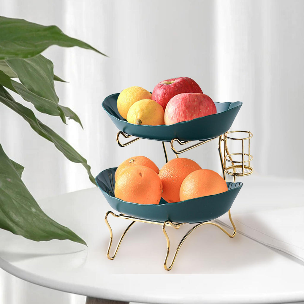 Maxbell Tiered Fruit Bowl Basket Holder Rack Tea Platter for kitchen 2 Tier Green