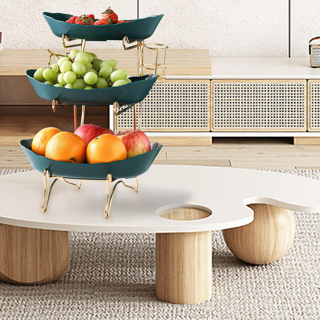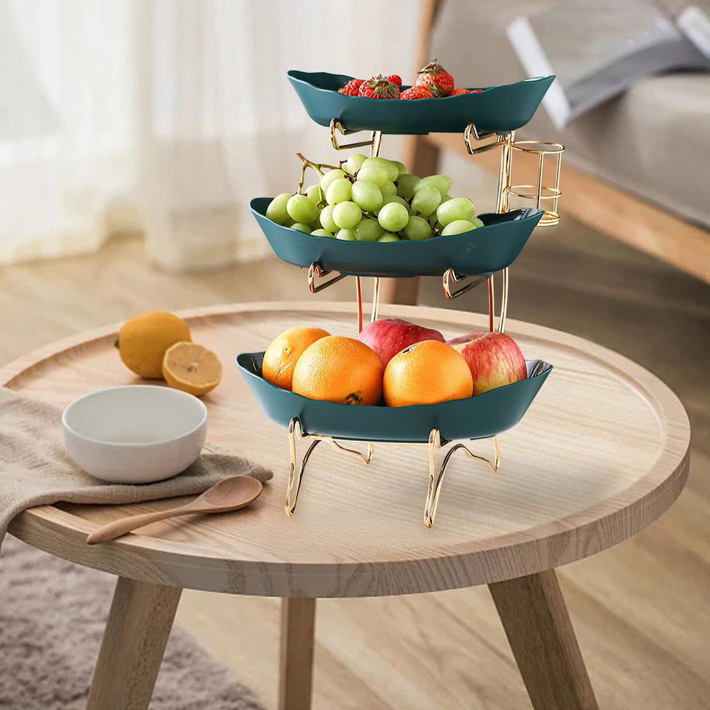Maxbell Tiered Fruit Bowl Basket Holder Rack Tea Platter for kitchen 3 Tier Green