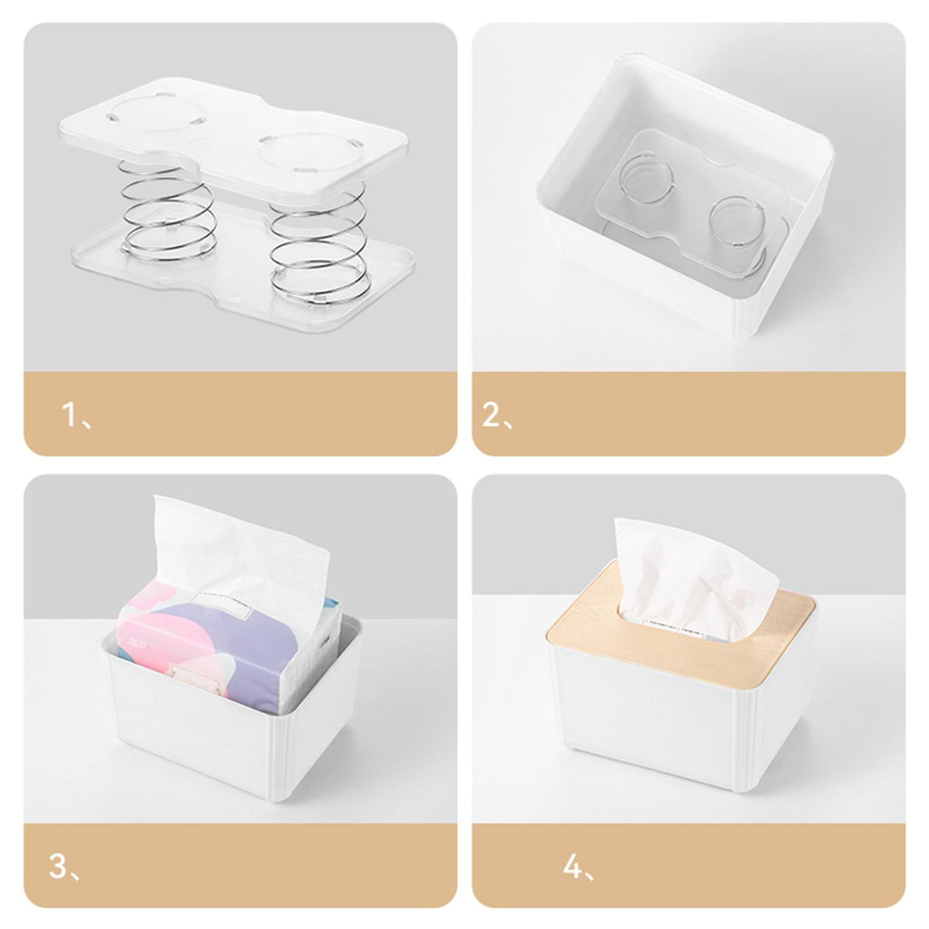TISSUE BOX Spring: Bottom place spring, automatically hold up paper, easily lift the remaining tissues.