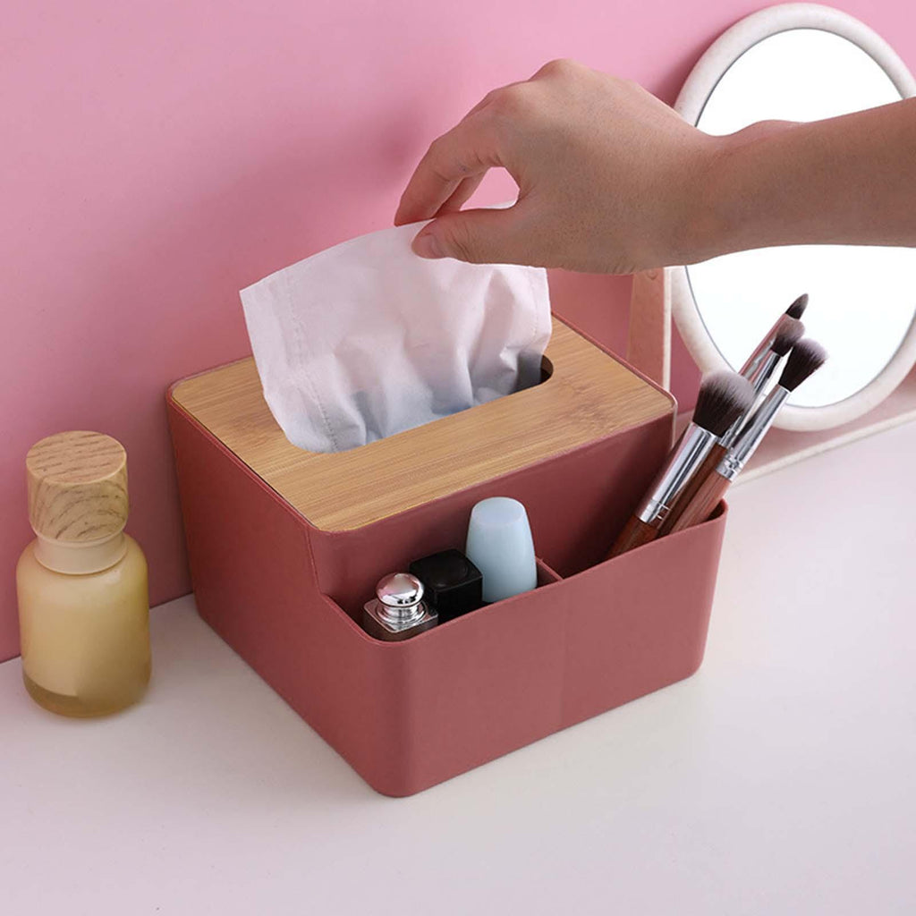 Maxbell Tissue Cover Napkin Dispenser with Storage Compartment for Kitchen Home Pink