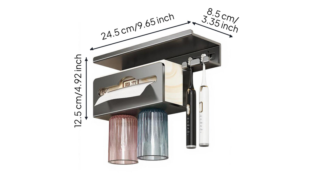 【Multifunctional Toothbrush Holder】This organizer features an easy push-to-install design, providing a hygienic, space-saving solution for your bathroom. Perfect for storing electric toothbrushes and rinse mugs, it keeps your countertop neat and maximizes storage space.【Quick Dry and sturdy】The rapid drainage design prevents water build-up, keeping toothbrushes and mugs dry and clean. Crafted from high-quality, rust-resistant materials for durability.【Large Capacity and Adjustable Compartments】Equipped with multiple compartments, this holder accommodates various toothbrushes, toothpaste, and accessories, perfect for families or shared bathrooms.【Easy to Clean and Removable】A detachable design makes cleaning and maintenance simple, helping you keep your bathroom tidy and hygienic at all instances.【Modern Minimalist Design】With its sleek and contemporary design, this toothbrush holder matches any bathroom décor, perfect for primary baths, guest suites, and dorm rooms.Specification: