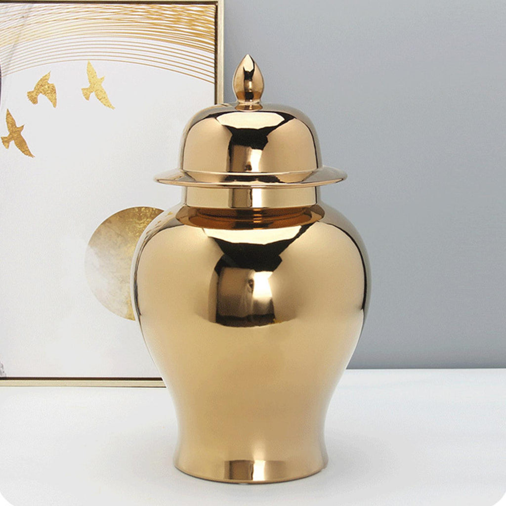 Traditional and Classic: Antique style smooth storage container and lid, ceramic ginger jar with smooth, elegant design.