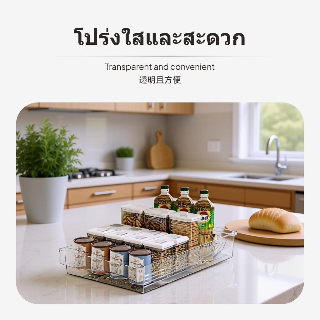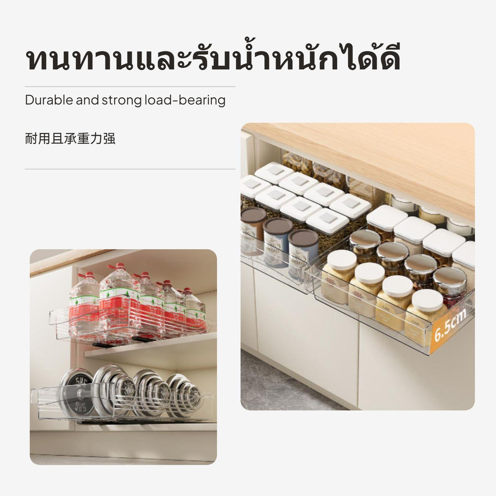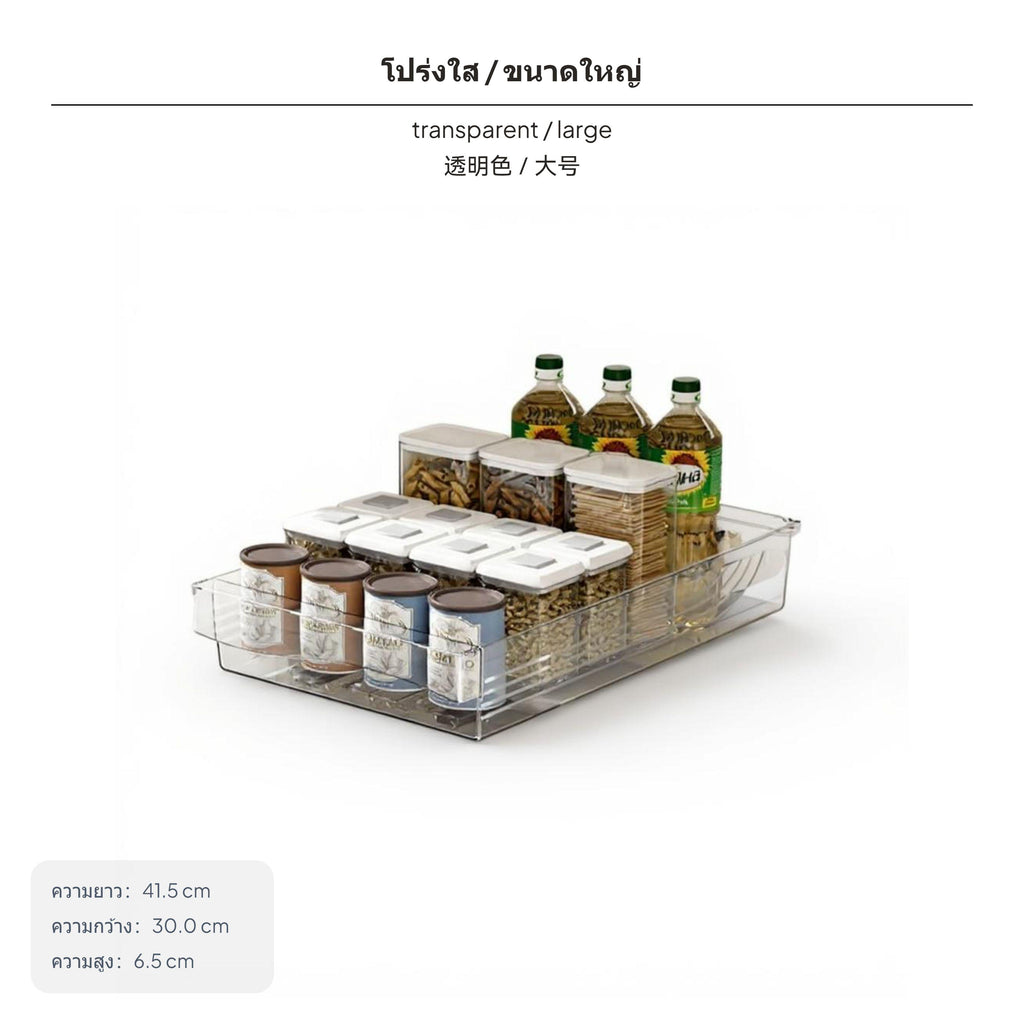 [Space-Saving Design] Featuring a low-dimension of 6.5cm height, this high-transparency PET drawer organizer optimizes narrow spaces, making it perfect for kitchens, desktops, and deep cabinets.[Two Flexible Sizes] Available in two dimensions—small (41.5cm x 25cm x 6.5cm) and large (41.5cm x 30cm x 6.5cm)—catering to diverse storage needs with ease.[Convenient No-Drill Installation] Includes strong bonding agent and removable rails for quick, cabinetcompatible setup, ensuring no damage while offering quiet, effortless sliding action.[protected Efficient Organization] High protective edges prevent item slippage, while its spacious design accommodates various items like snacks, utensils, or spices clearly.[Easy Maintenance & High Utility] Convenient detachable rails simplify cleaning, while its robust construction ensures stability, making it a must-have for clutterunrestricted organization.Specification: